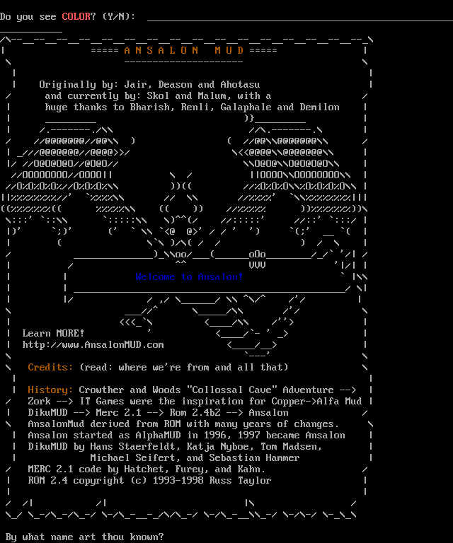 Ansalon is a DragonLance MUD (Multi User Dungeon, Text Based Game) where a player can become an imaginary character in the DragonLance world, and interact with other players who are also playing at the same time. Your character can be a , a , a , a , a fun-loving , or any of a . Ansalon is one of the longest-running MUDs left in existence (). It is a stable, well-developed world, with custom code and custom areas to explore. Well over a decade later, we're making upgrades and changes on a weekly basis!