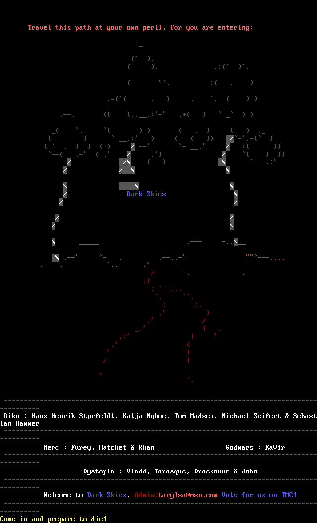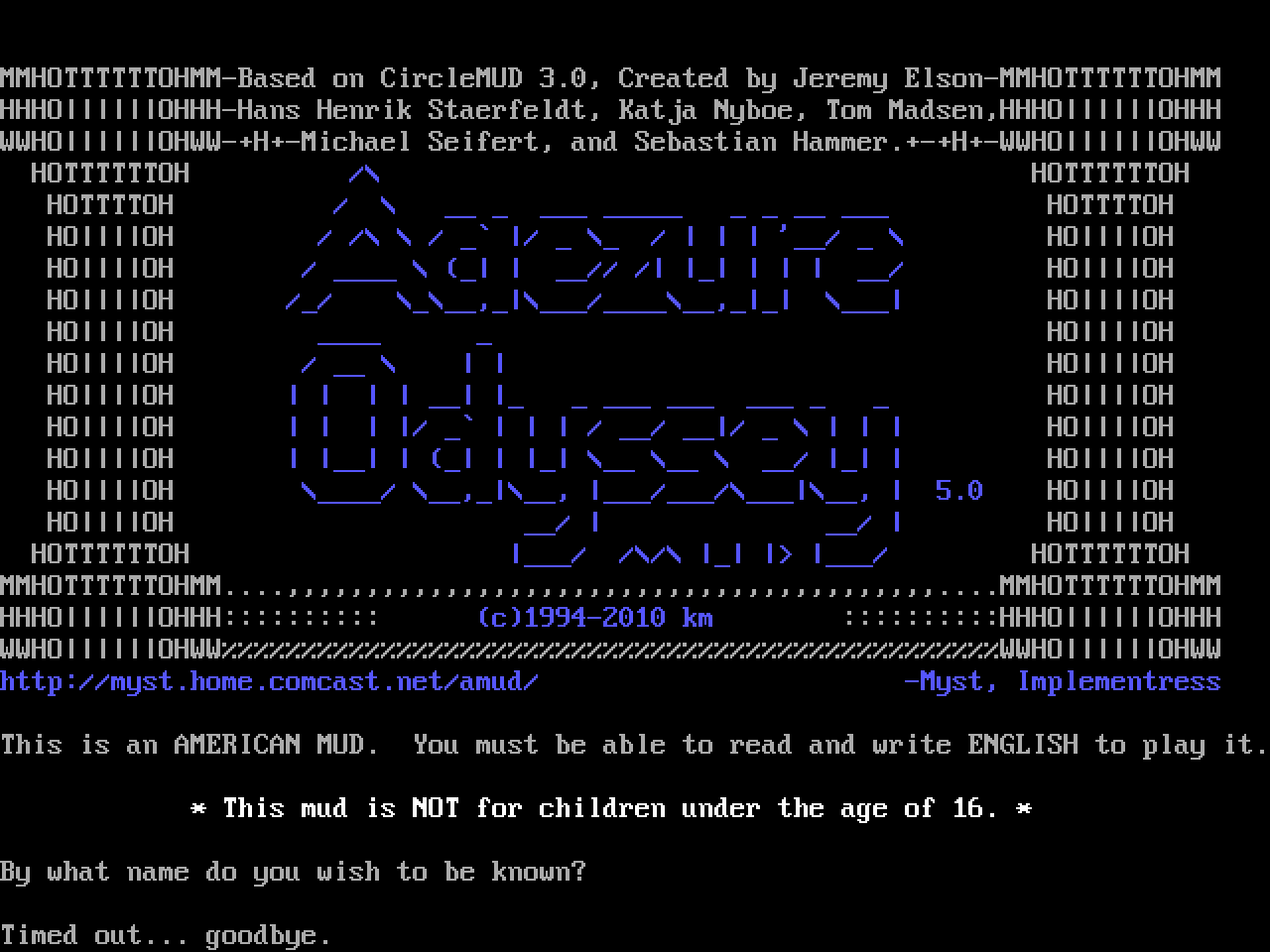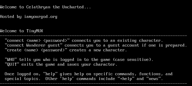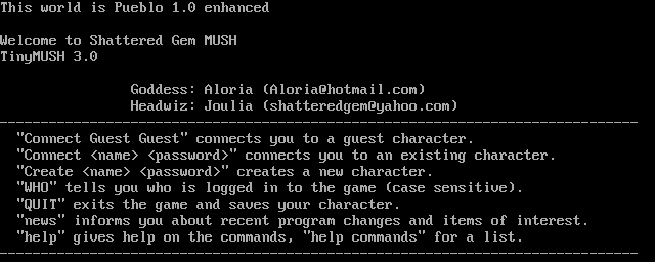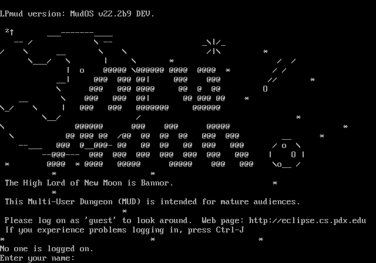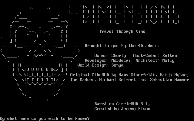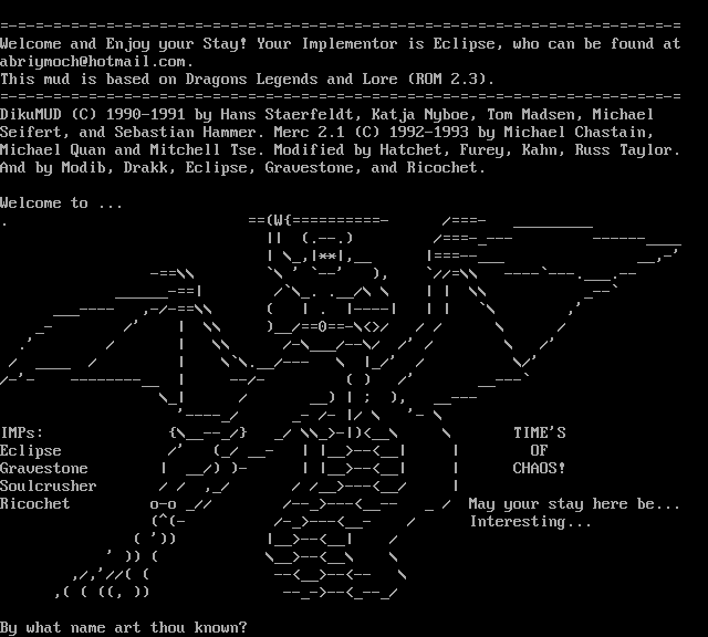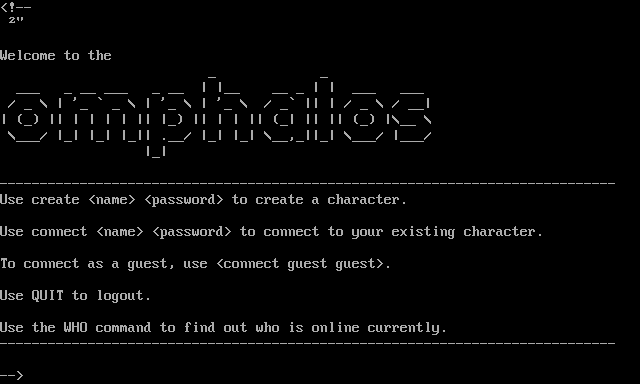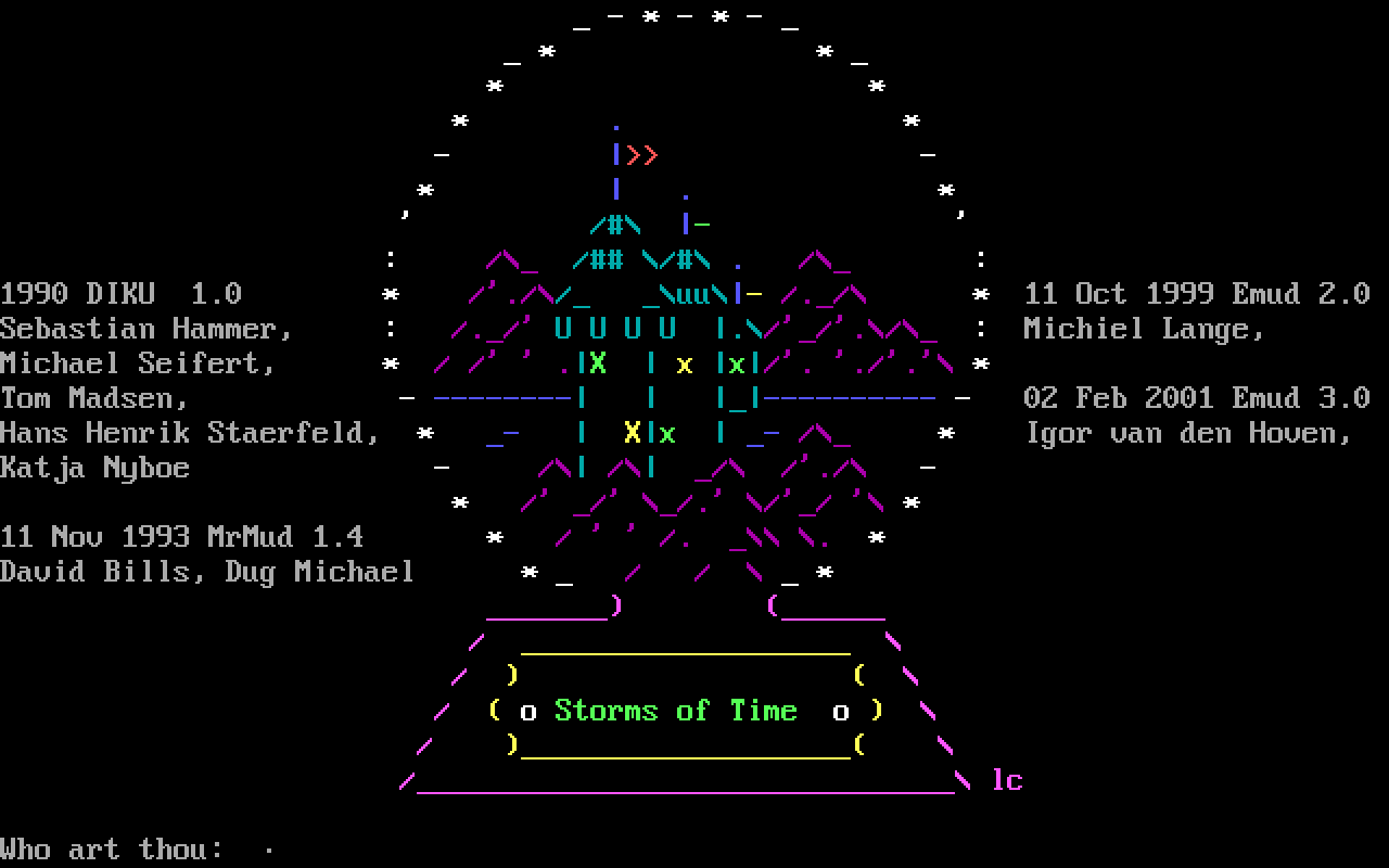 The following MU front door snapshots were taken by Webmudlister starting in 2013. Feel free to include them in your MU listing pages. View the source of this page and search for the domain name or IP address to locate in the list quickly. Of note, it is sorted A-Z based on its IP/Domain.