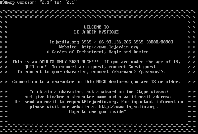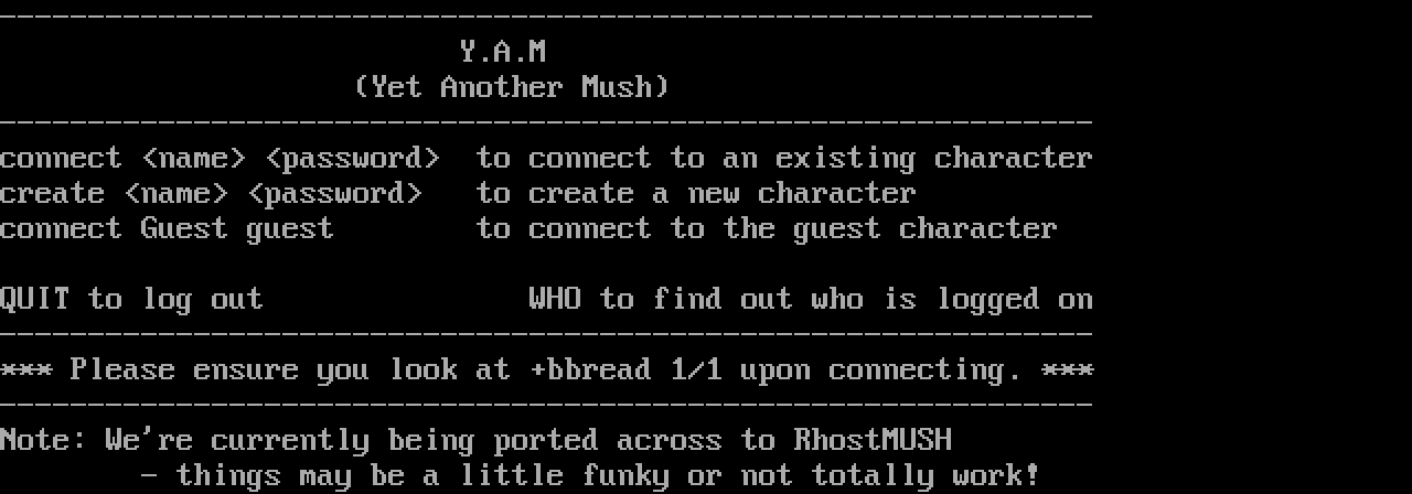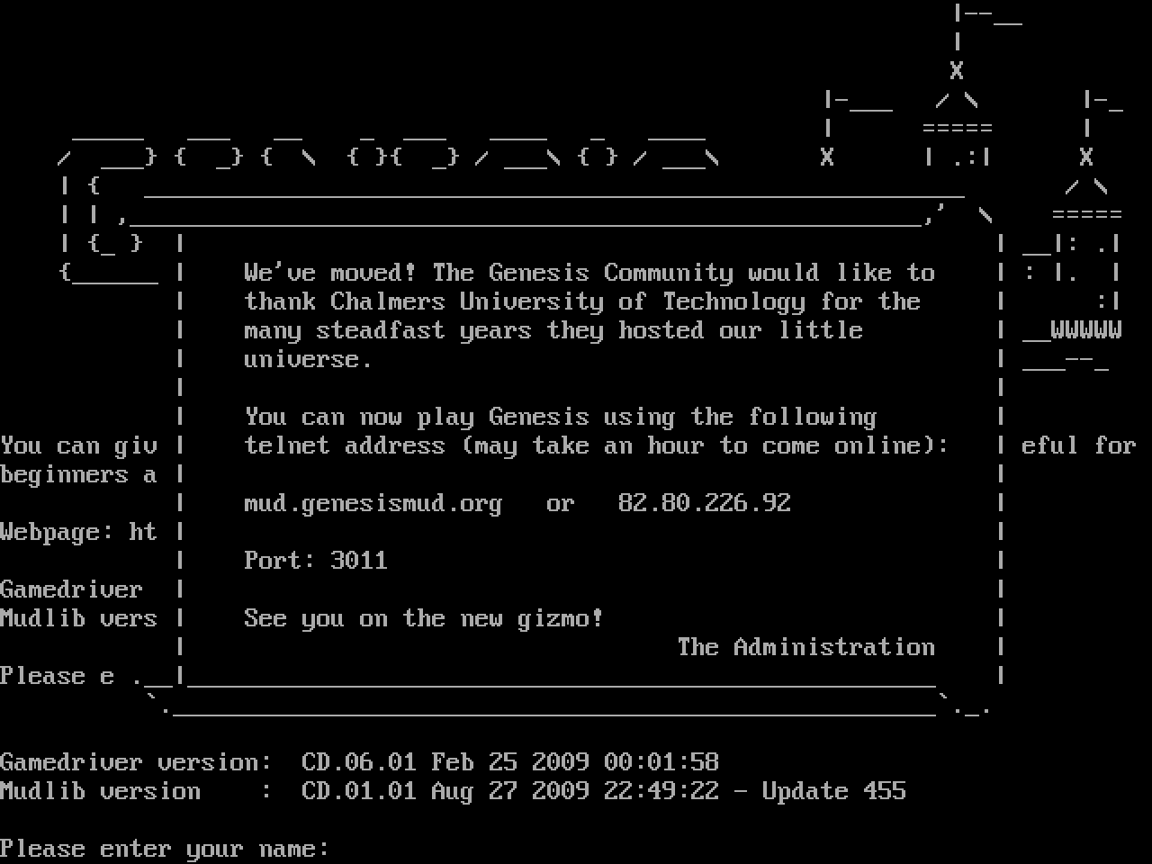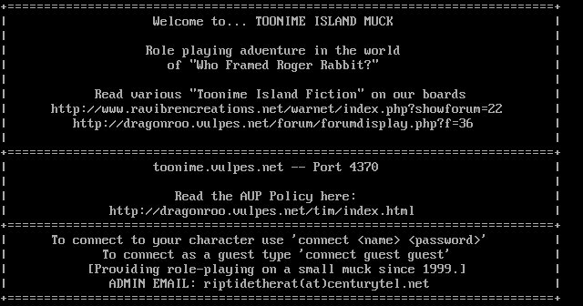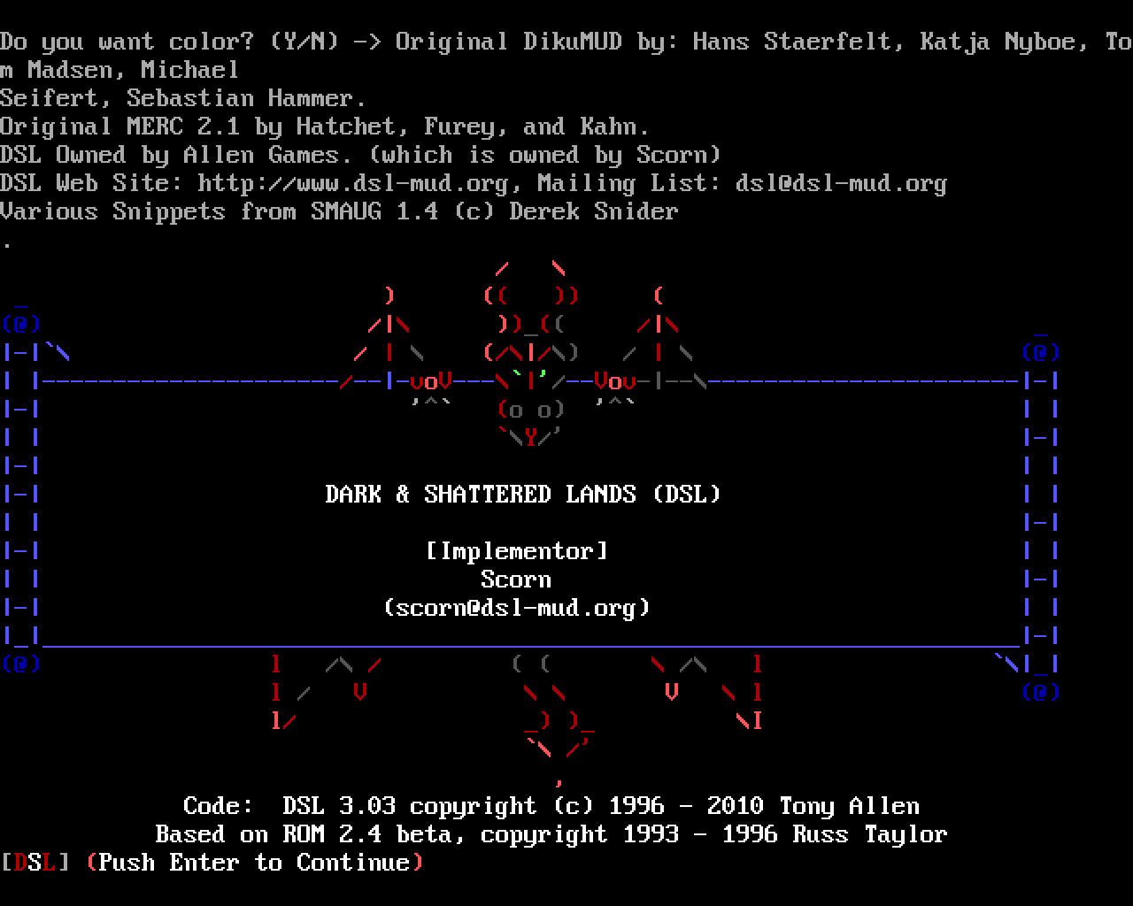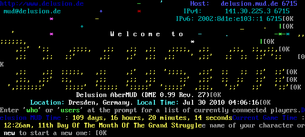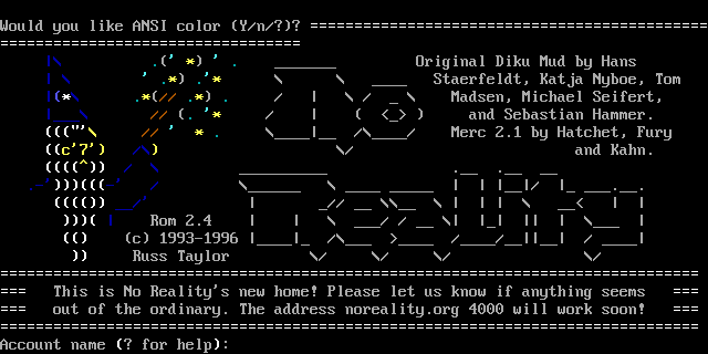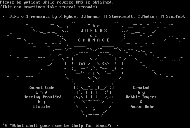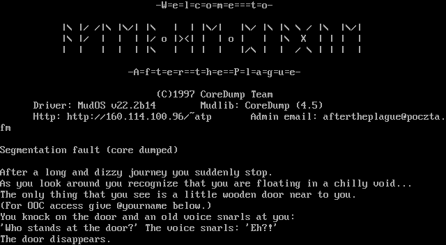 The following MU front door snapshots were taken by Webmudlister starting in 2013. Feel free to include them in your MU listing pages. View the source of this page and search for the domain name or IP address to locate in the list quickly. Of note, it is sorted A-Z based on its IP/Domain.