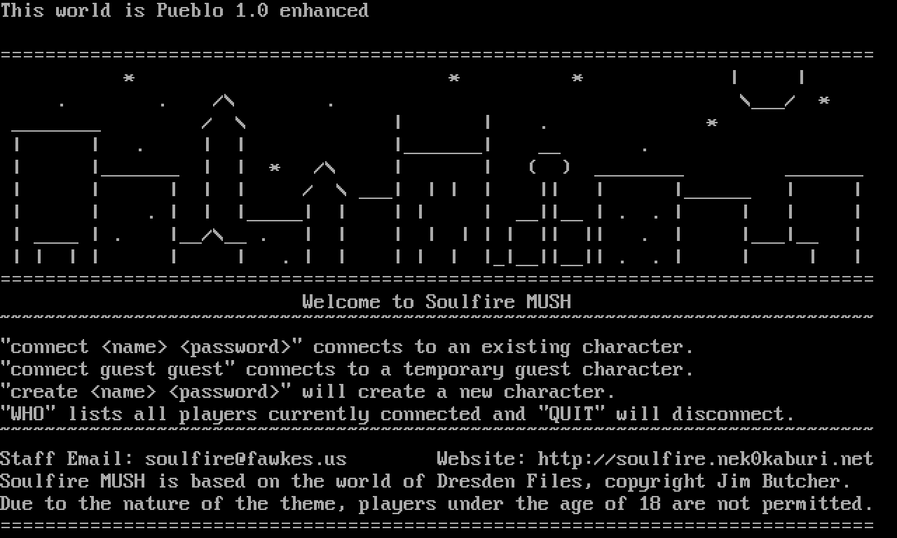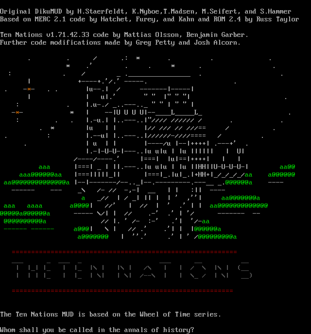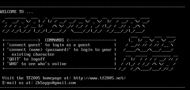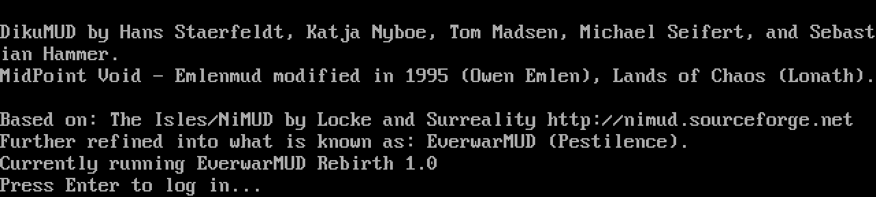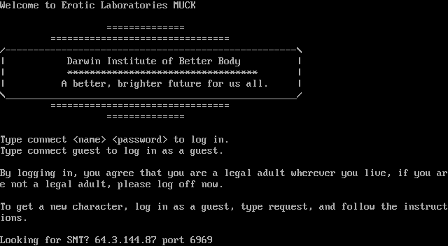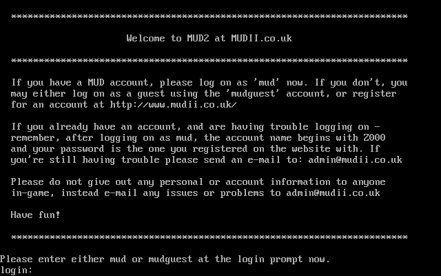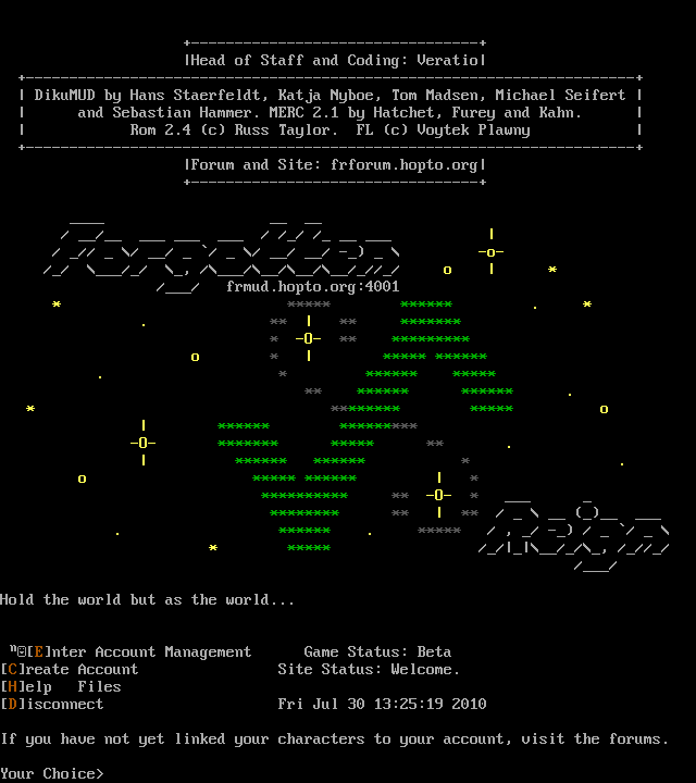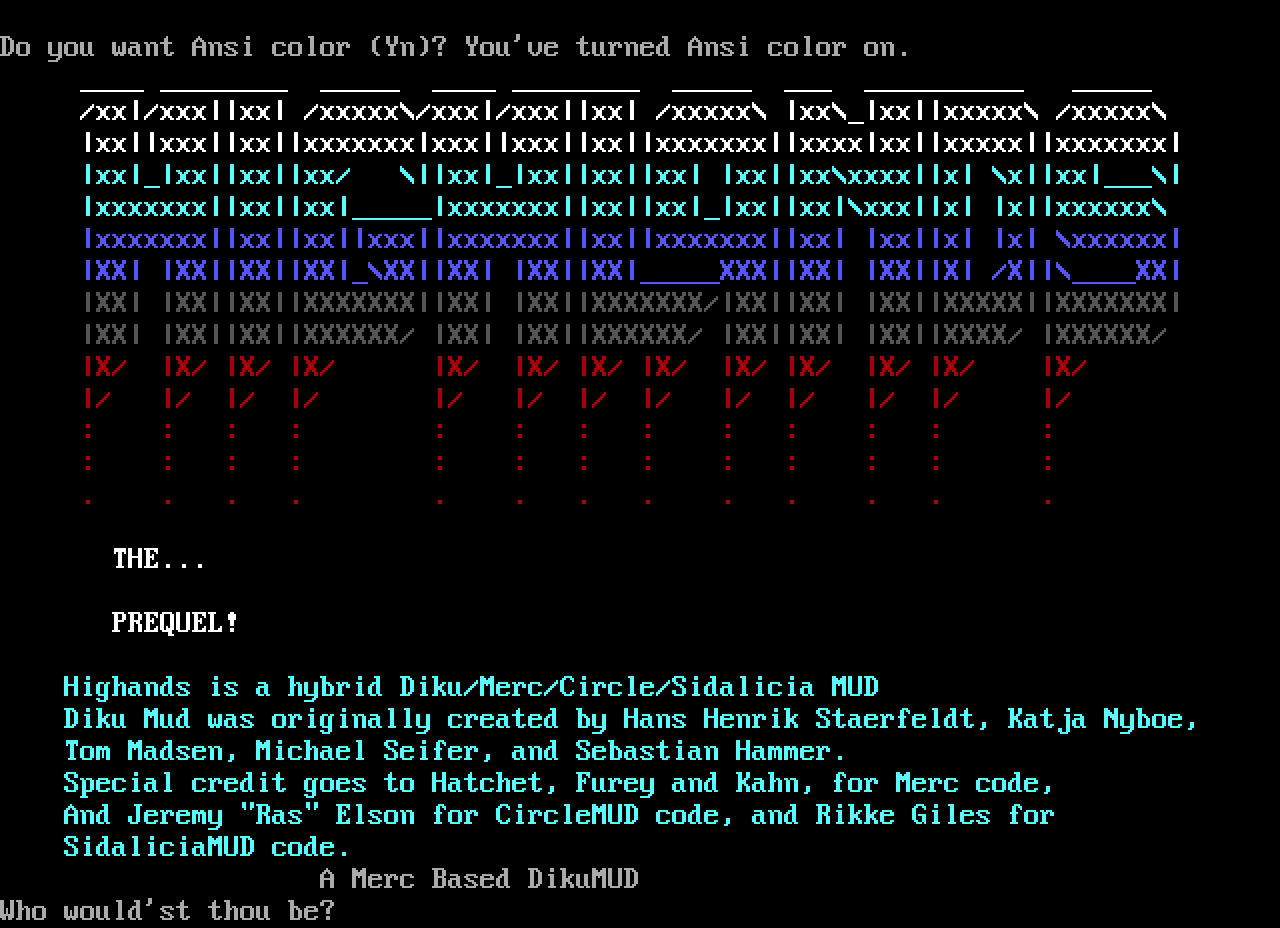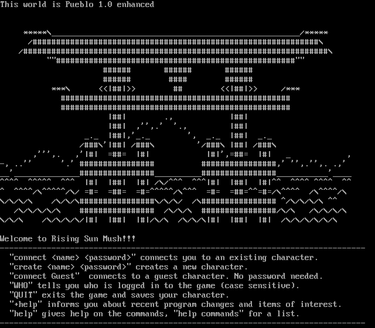 The following MU front door snapshots were taken by Webmudlister starting in 2013. Feel free to include them in your MU listing pages. View the source of this page and search for the domain name or IP address to locate in the list quickly. Of note, it is sorted A-Z based on its IP/Domain.