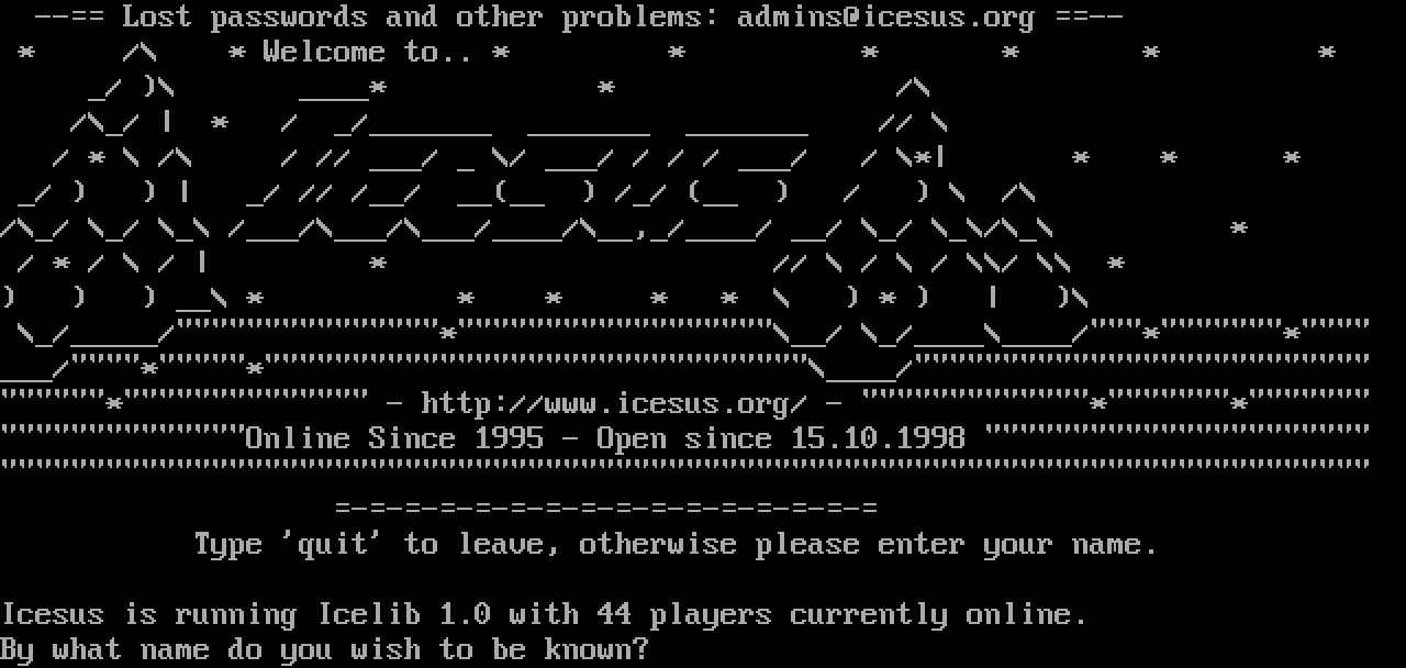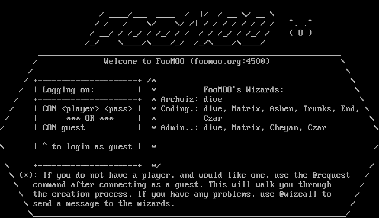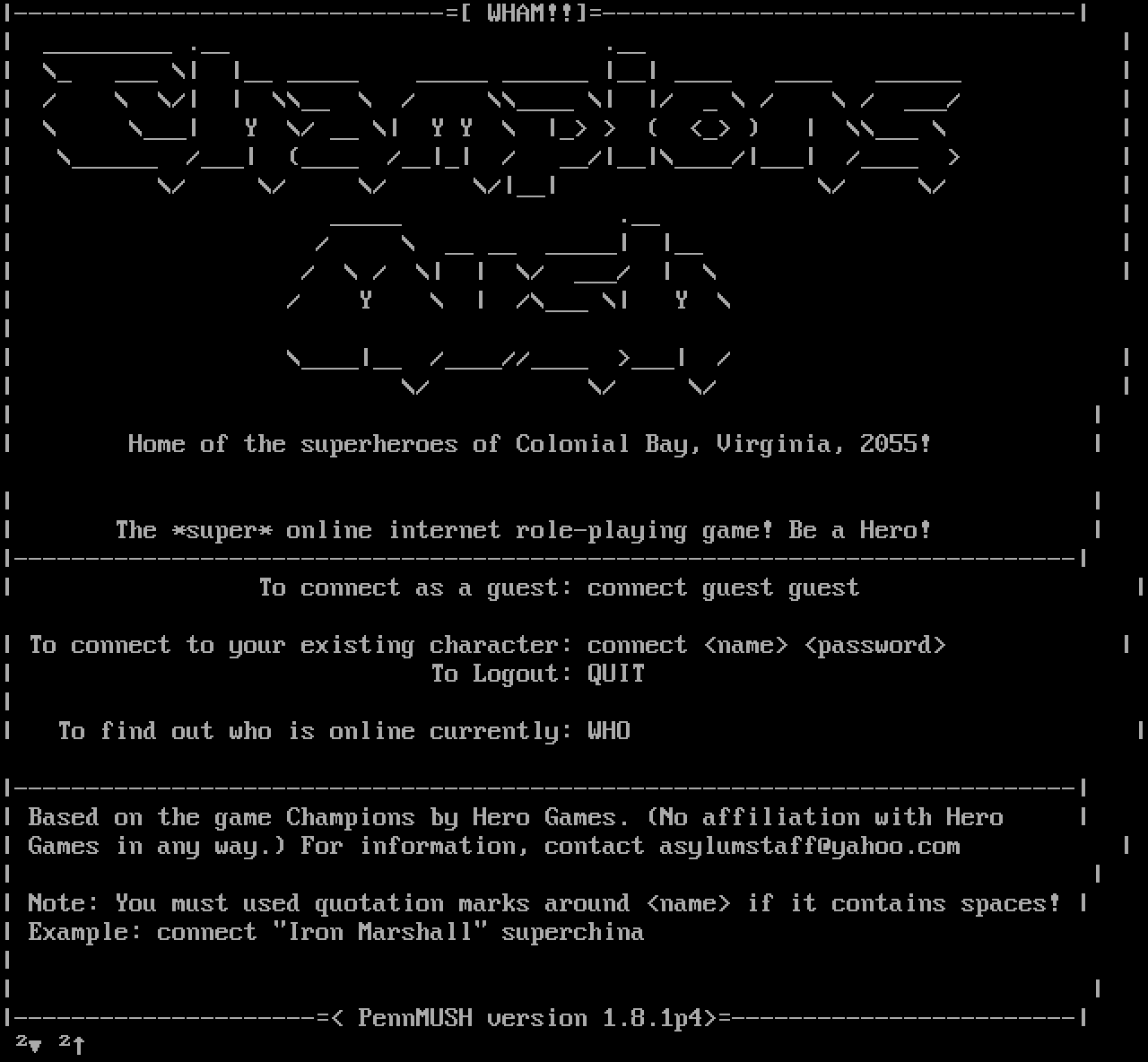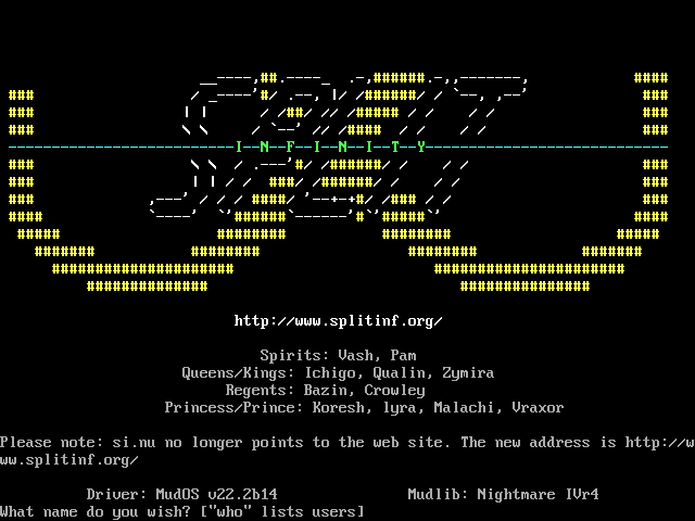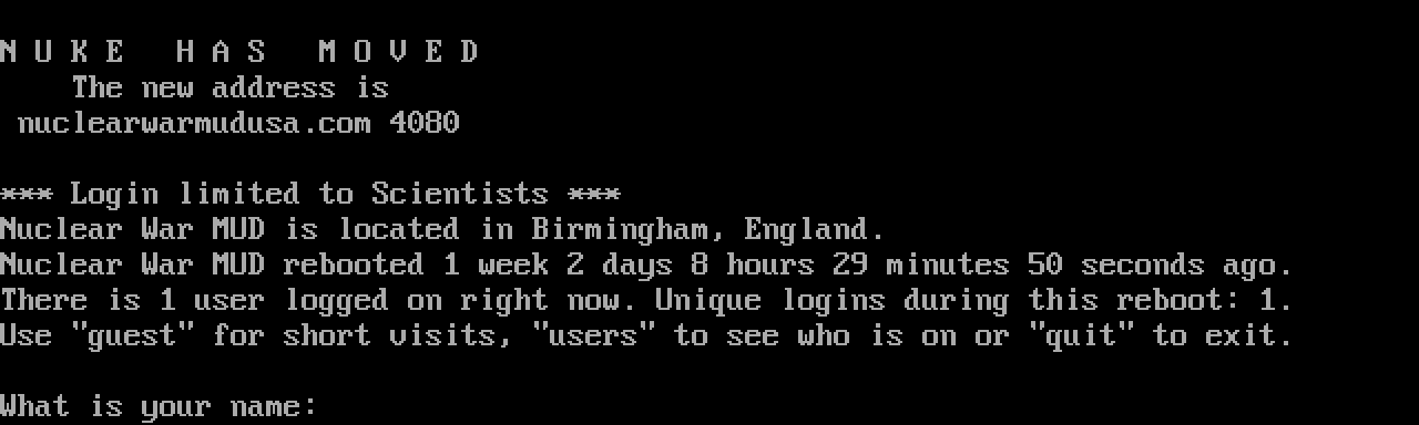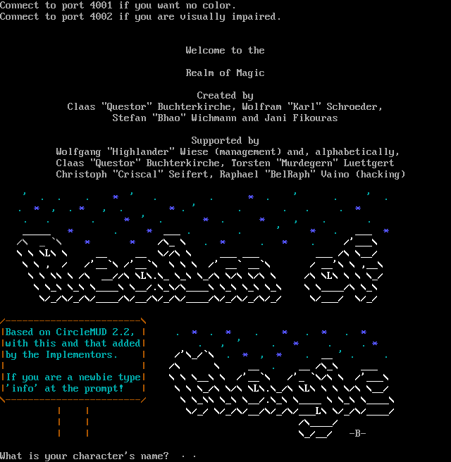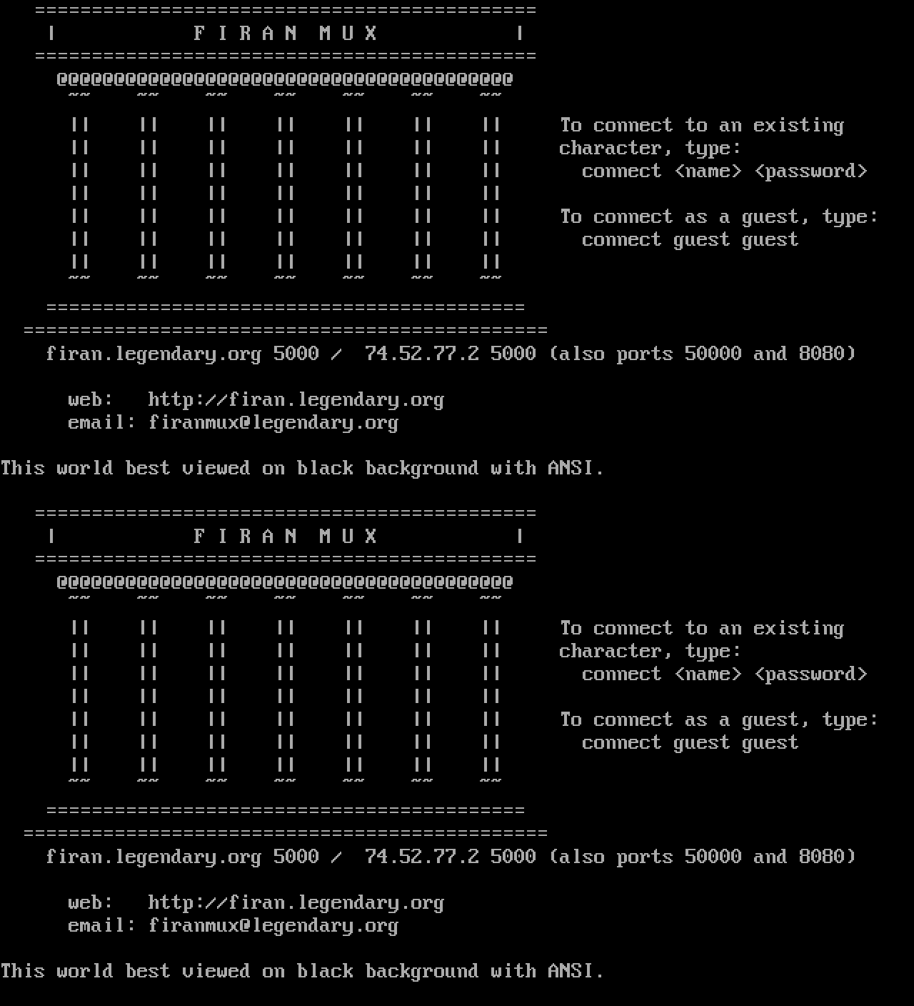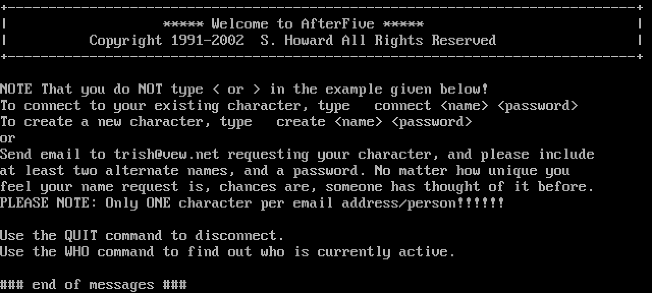 The following MU front door snapshots were taken by Webmudlister starting in 2013. Feel free to include them in your MU listing pages. View the source of this page and search for the domain name or IP address to locate in the list quickly. Of note, it is sorted A-Z based on its IP/Domain.
