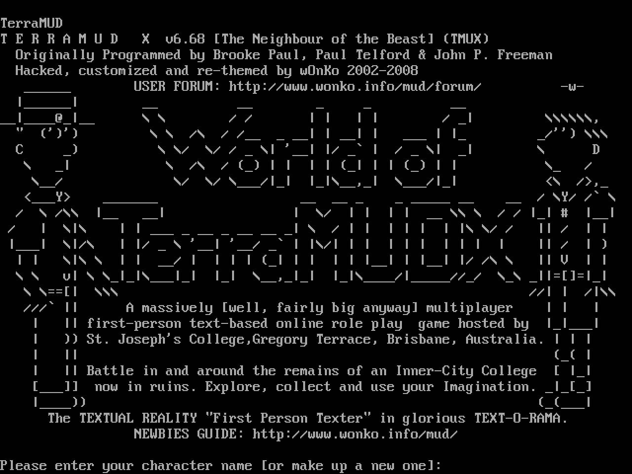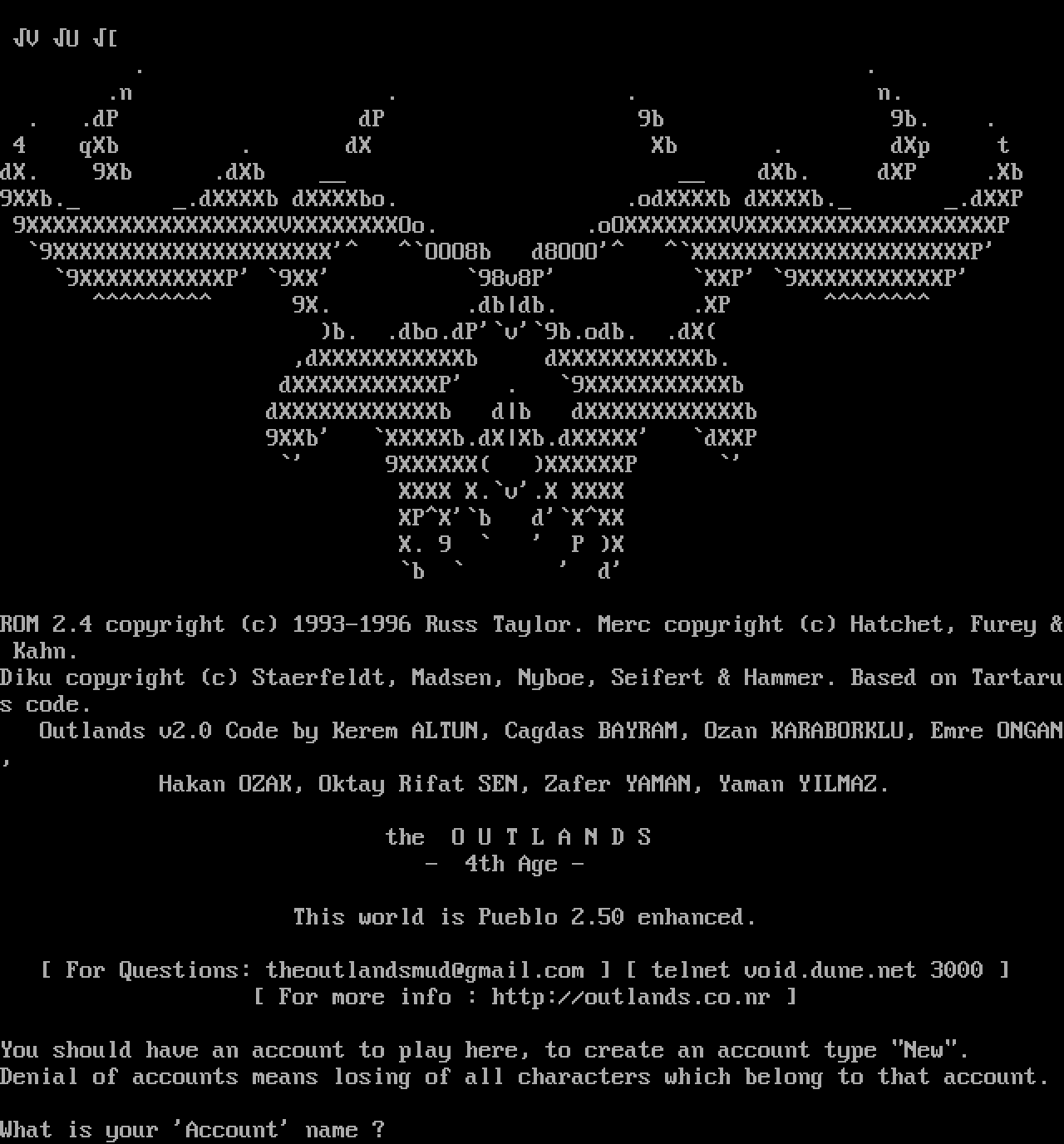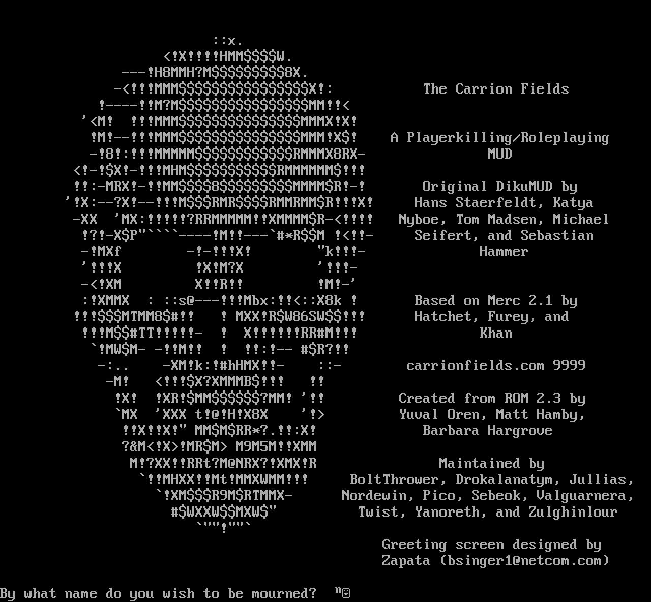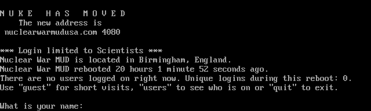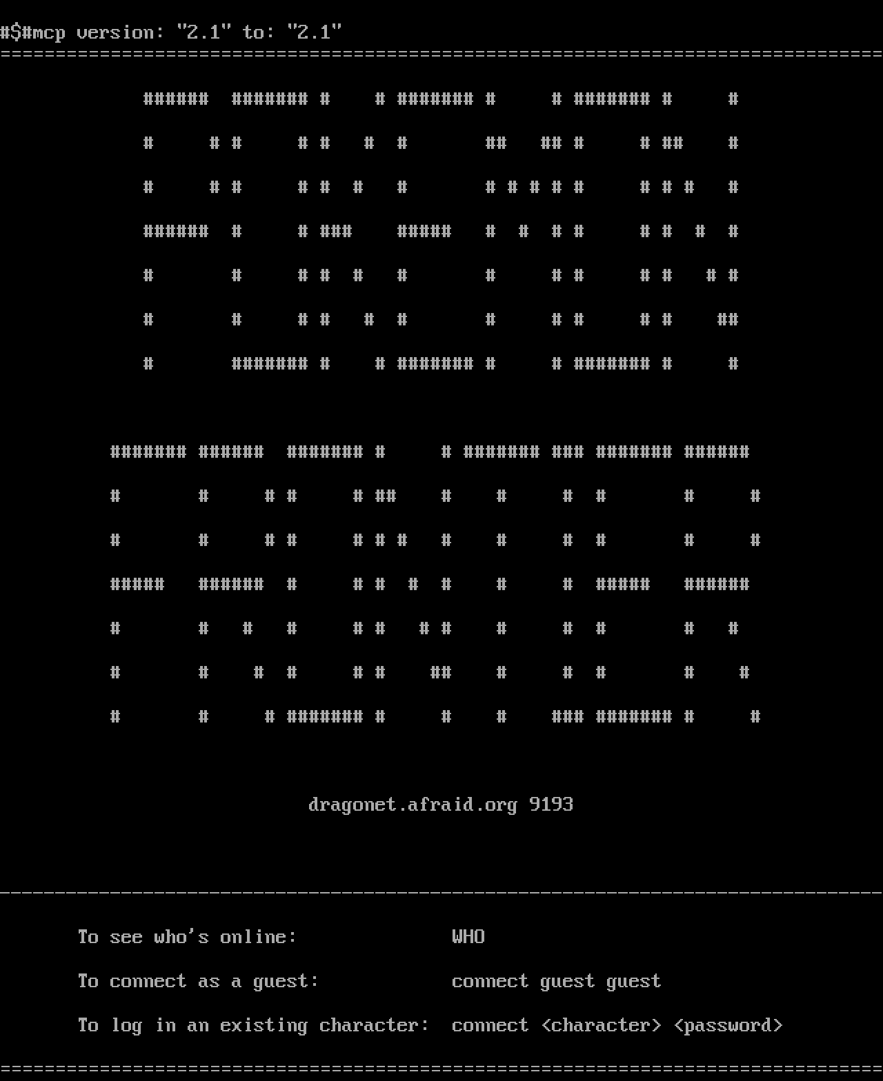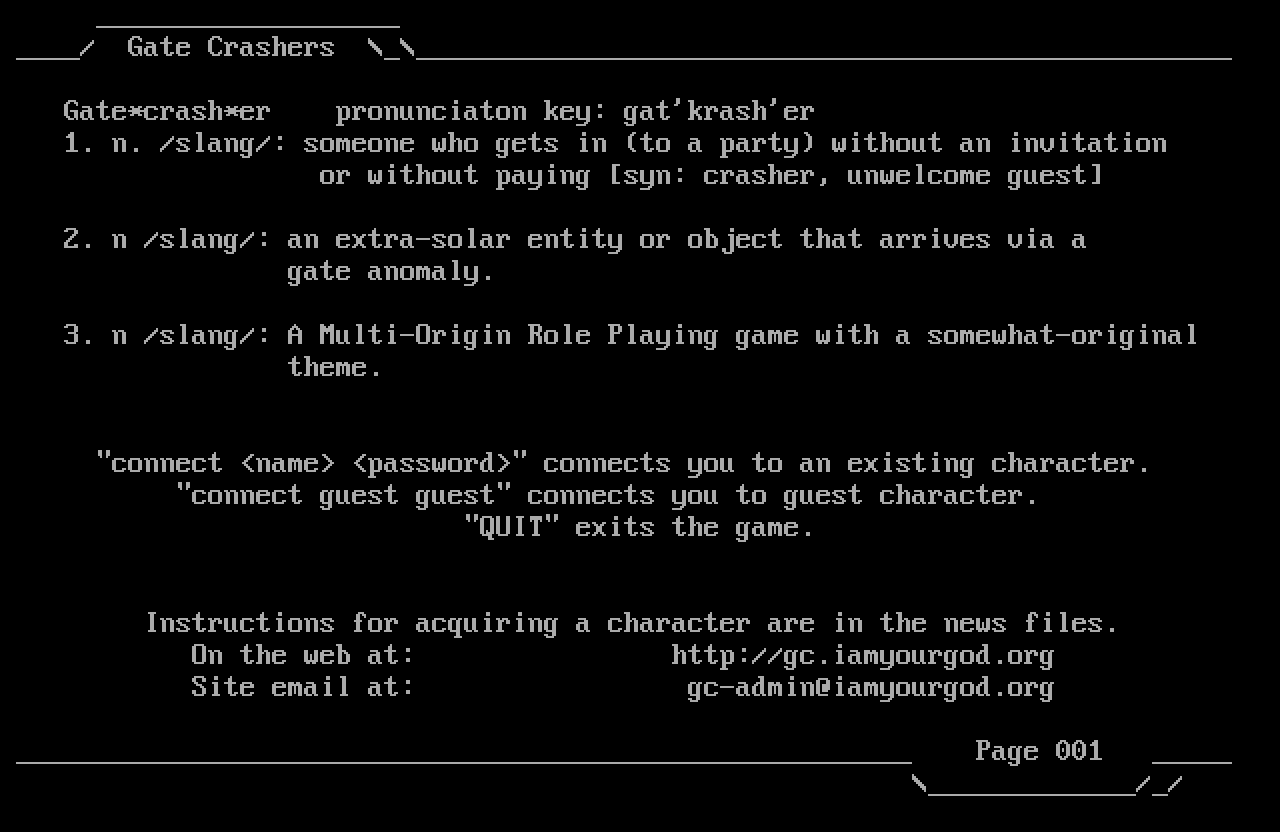The following MU front door snapshots were taken by Webmudlister starting in 2013. Feel free to include them in your MU listing pages. View the source of this page and search for the domain name or IP address to locate in the list quickly. Of note, it is sorted A-Z based on its IP/Domain.