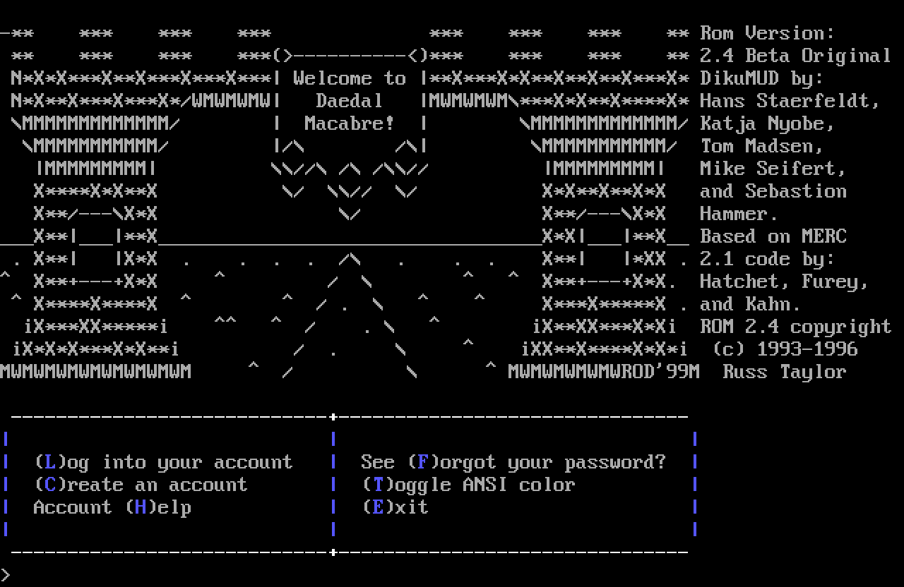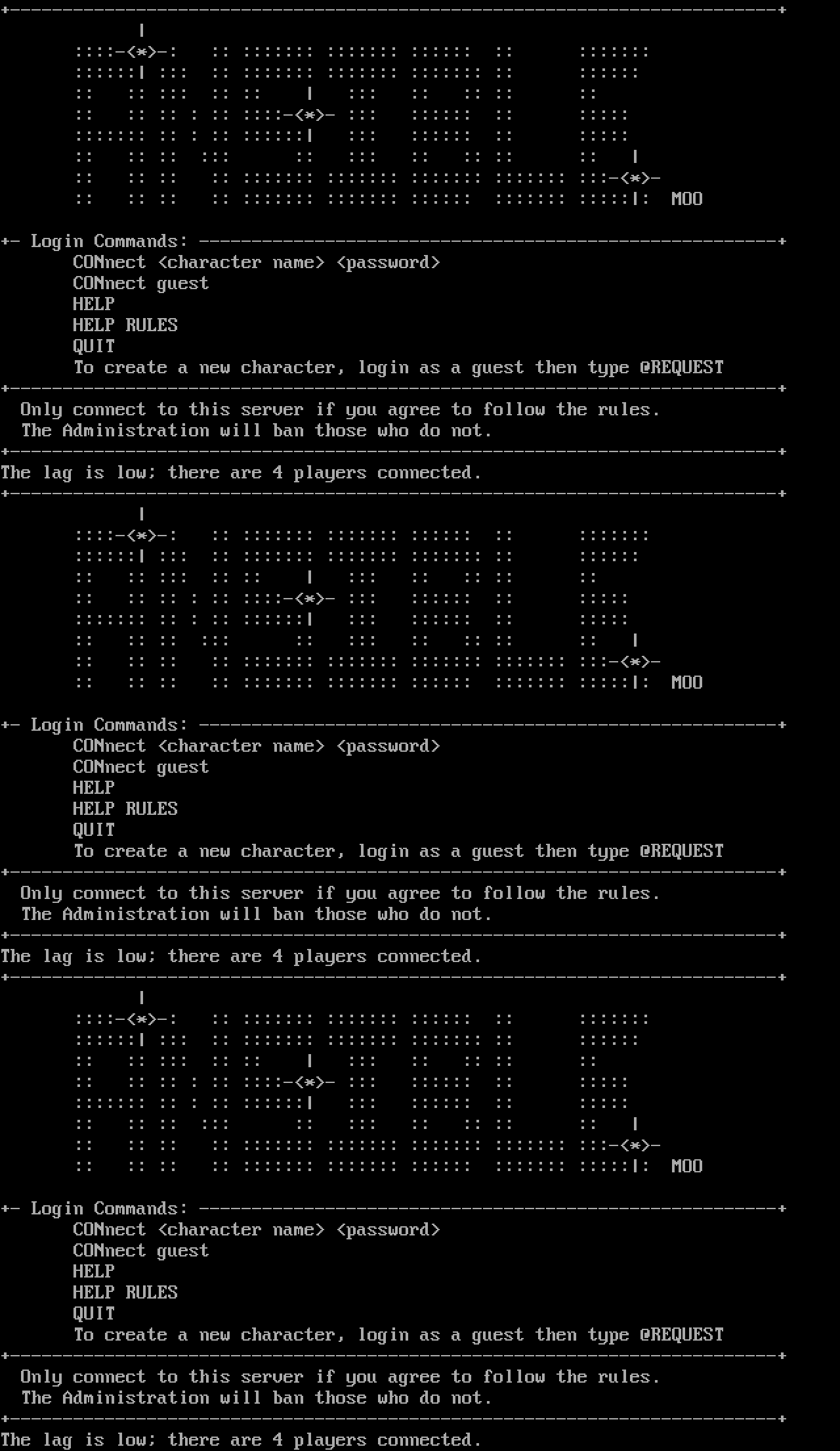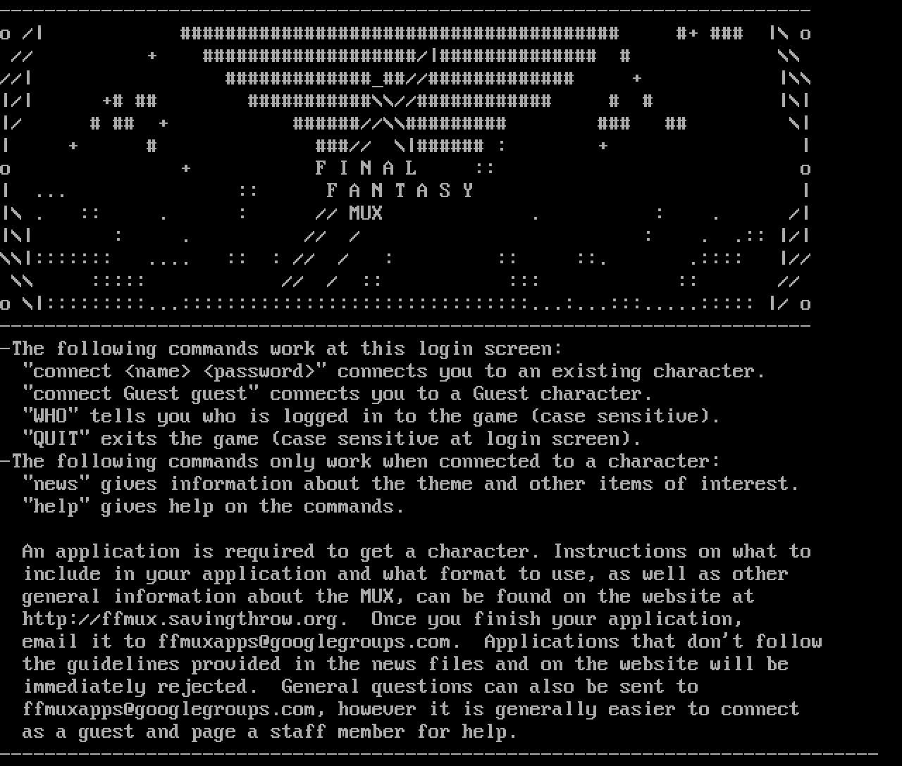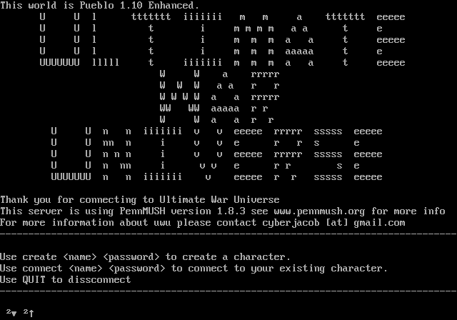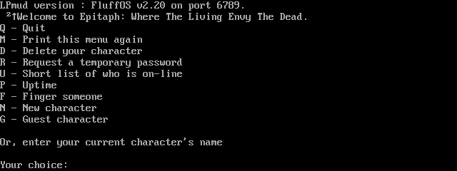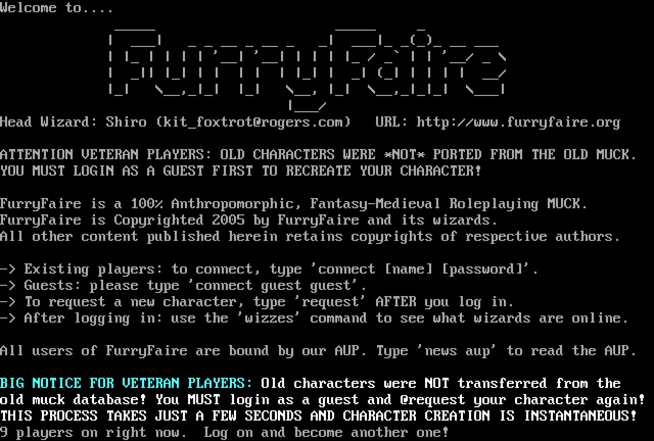 The following MU front door snapshots were taken by Webmudlister starting in 2013. Feel free to include them in your MU listing pages. View the source of this page and search for the domain name or IP address to locate in the list quickly. Of note, it is sorted A-Z based on its IP/Domain.
