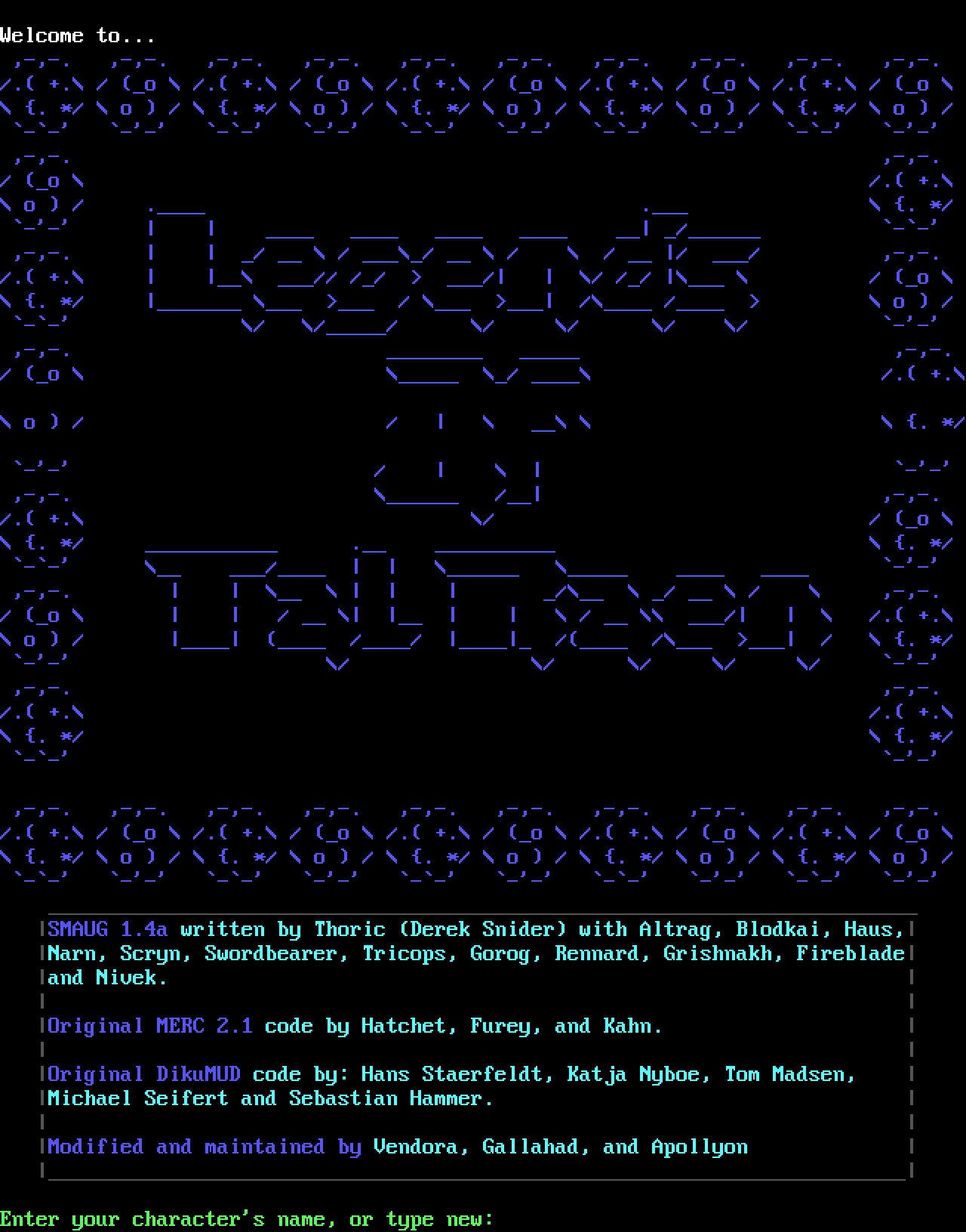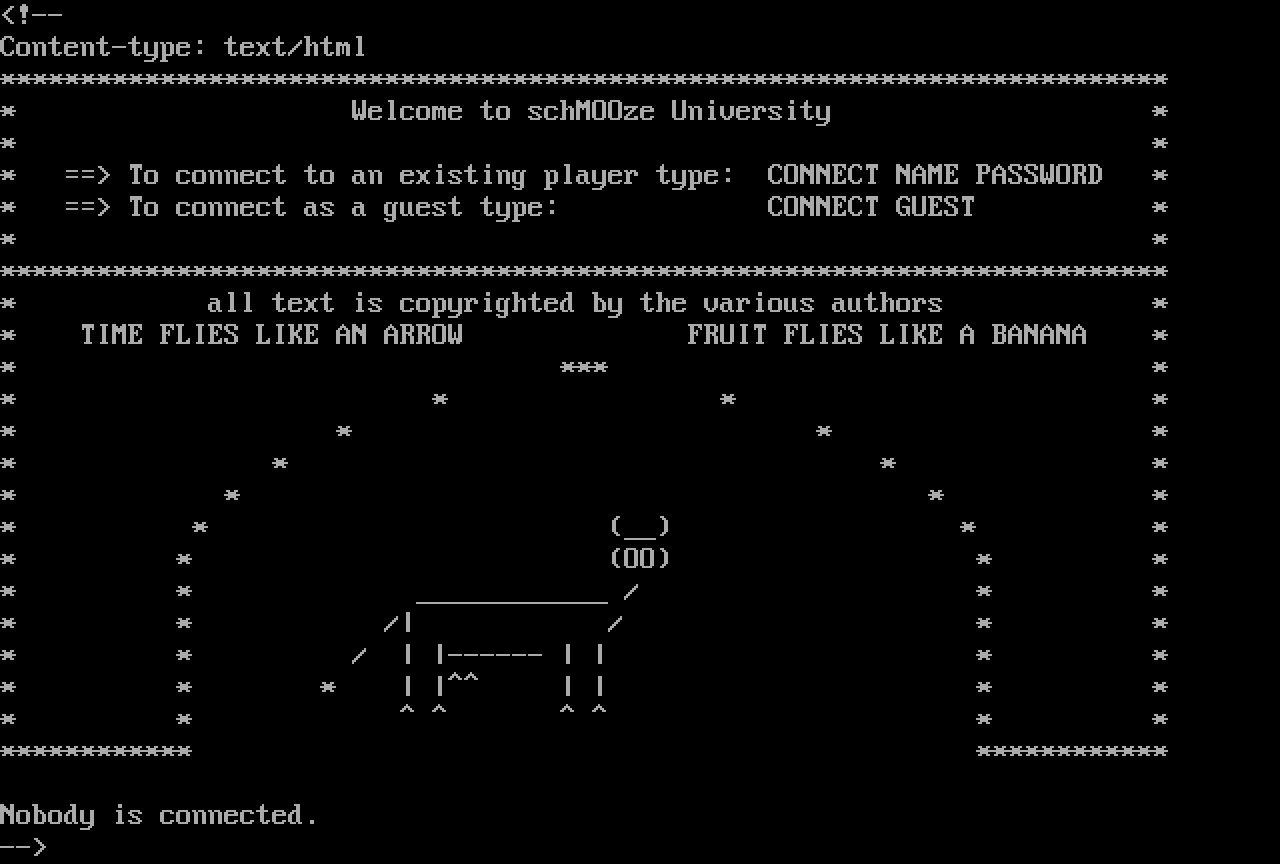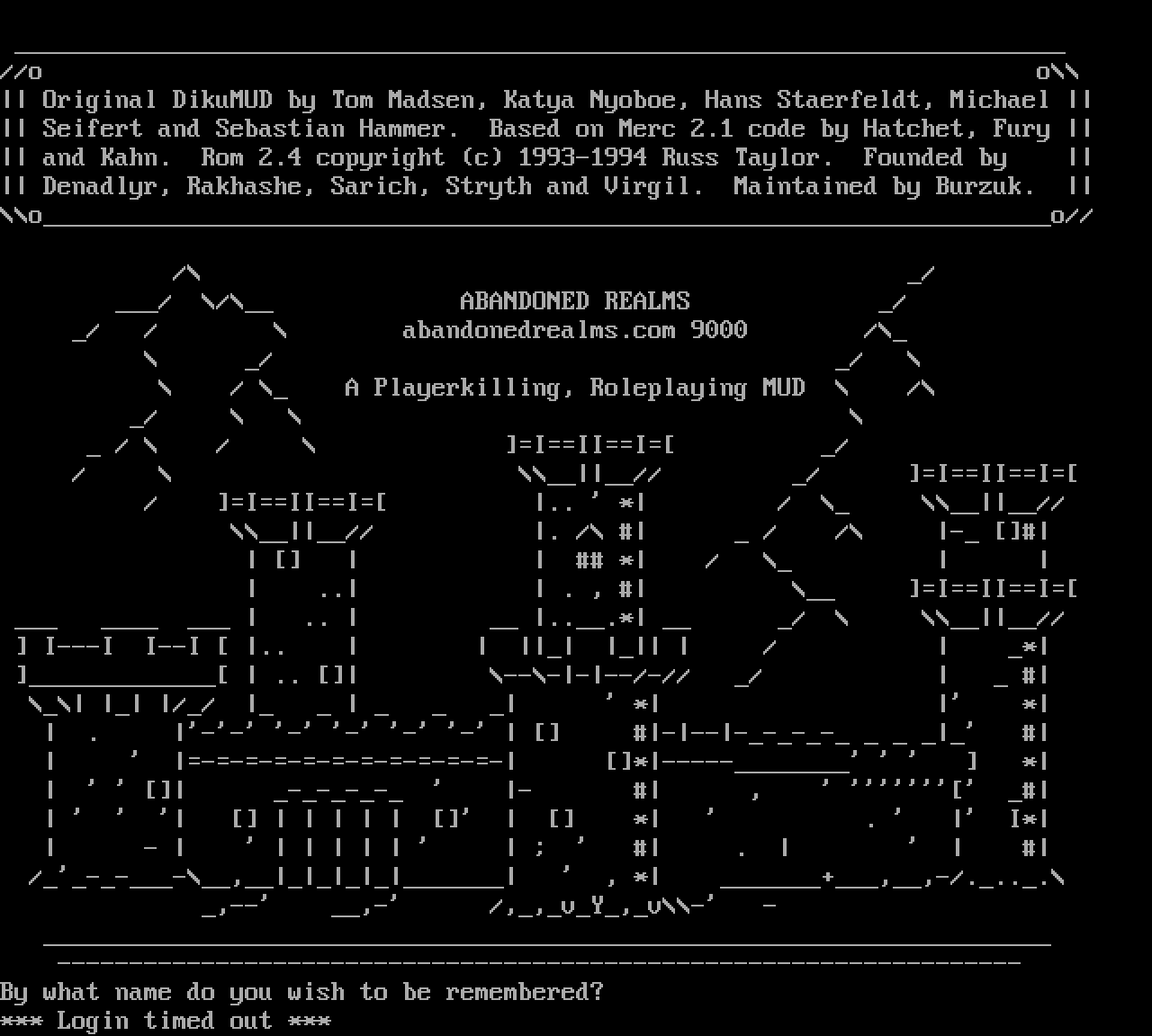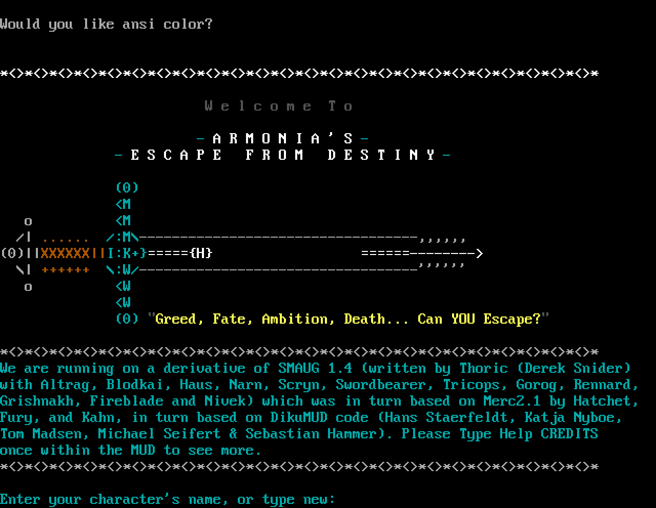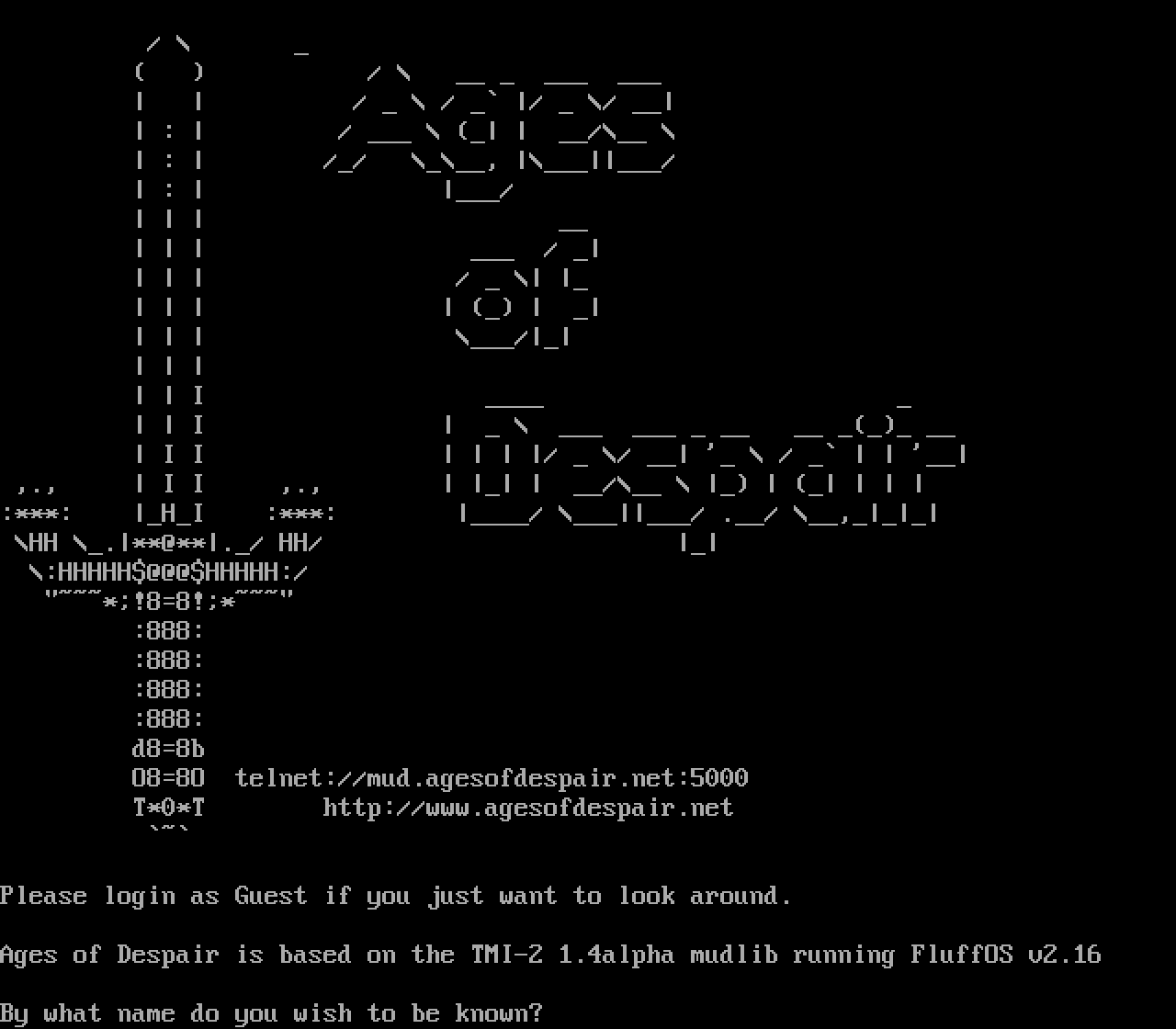The following MU front door snapshots were taken by Webmudlister starting in 2013. Feel free to include them in your MU listing pages. View the source of this page and search for the domain name or IP address to locate in the list quickly. Of note, it is sorted A-Z based on its IP/Domain.