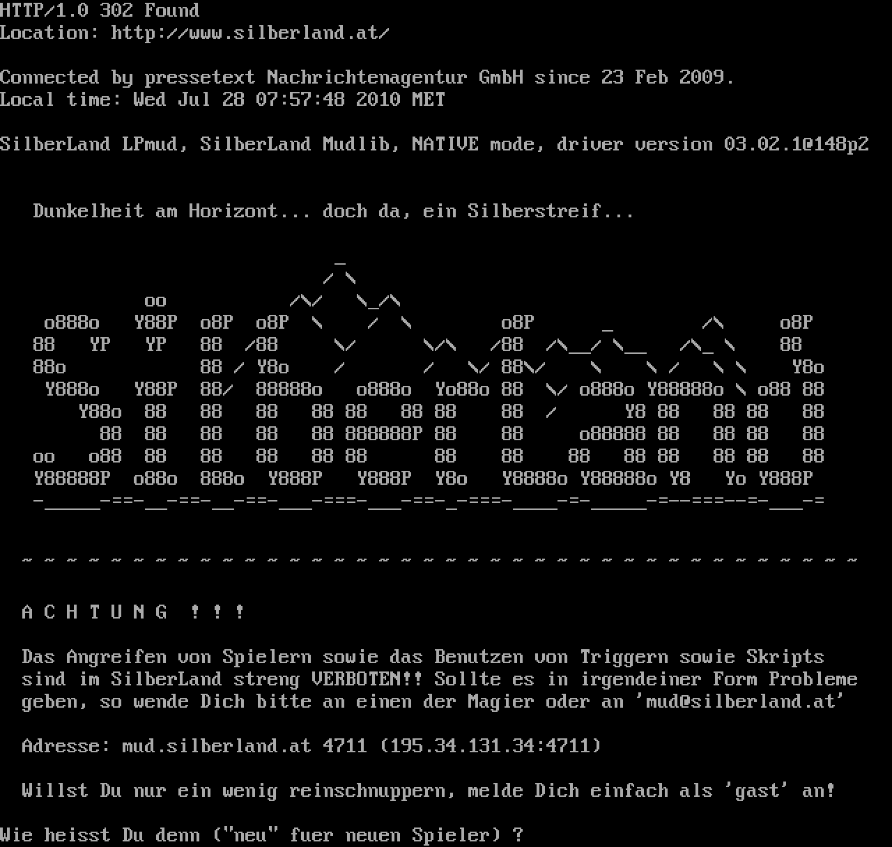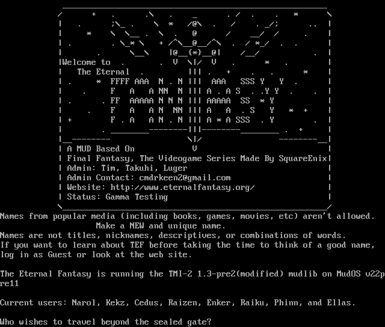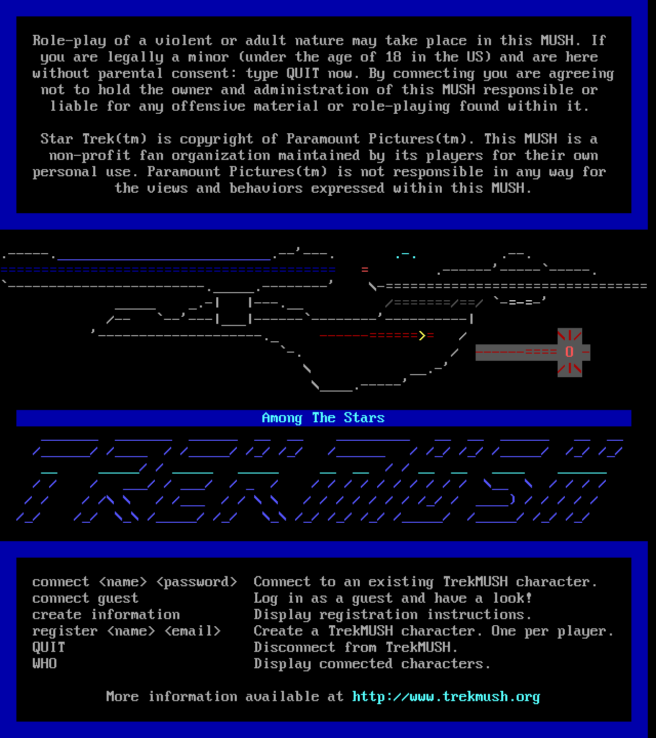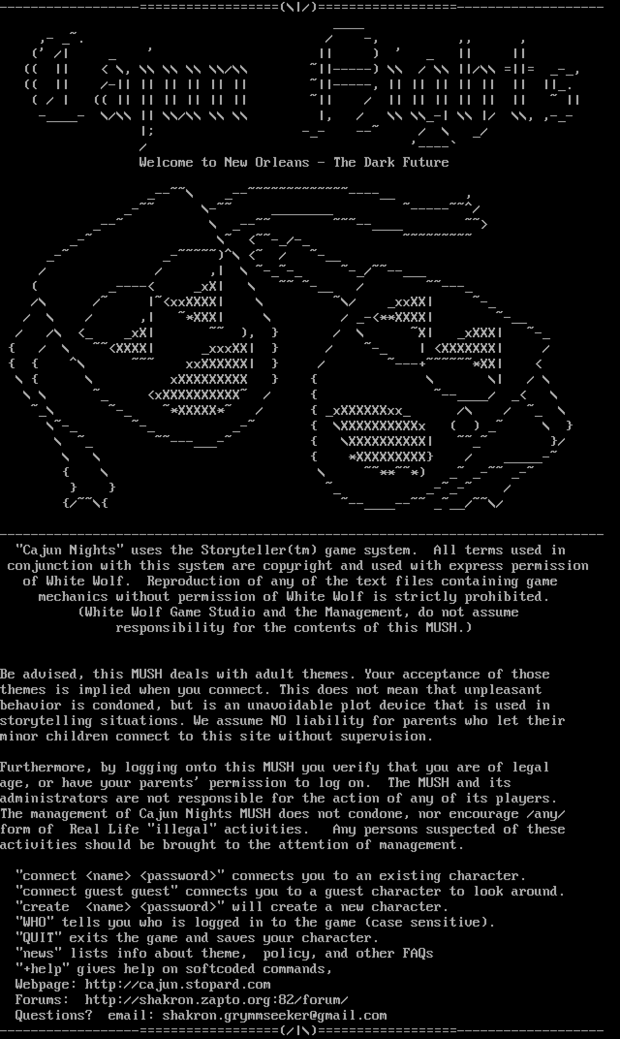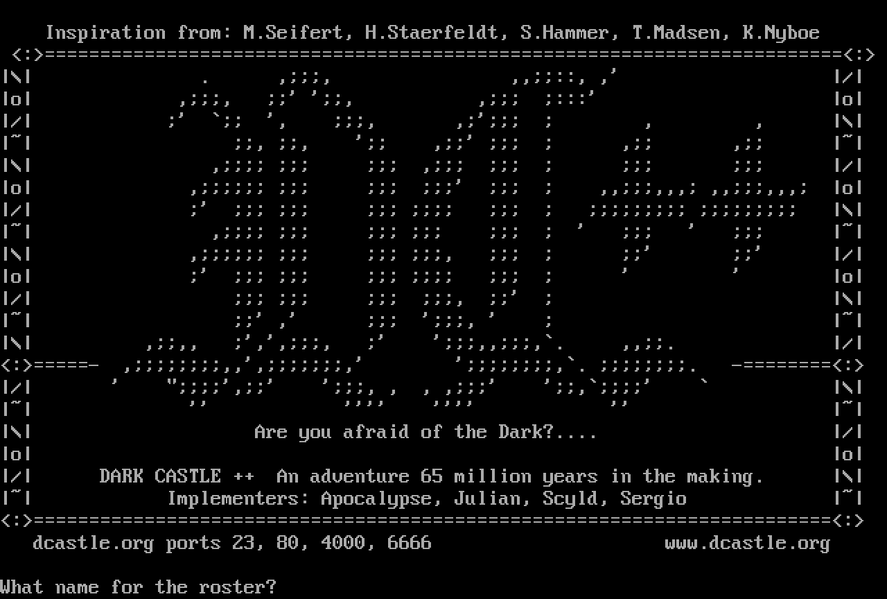 The following MU front door snapshots were taken by Webmudlister starting in 2013. Feel free to include them in your MU listing pages. View the source of this page and search for the domain name or IP address to locate in the list quickly. Of note, it is sorted A-Z based on its IP/Domain.