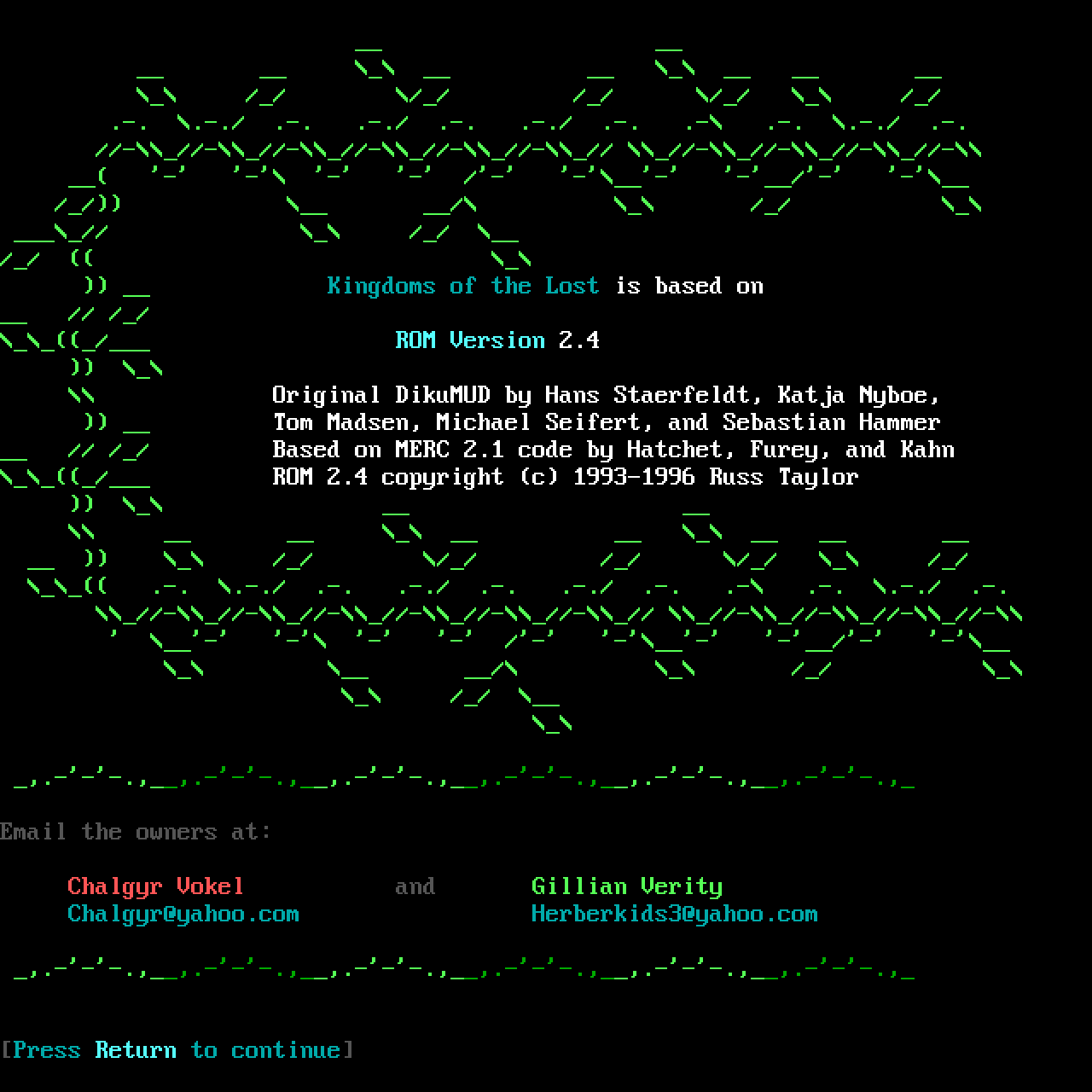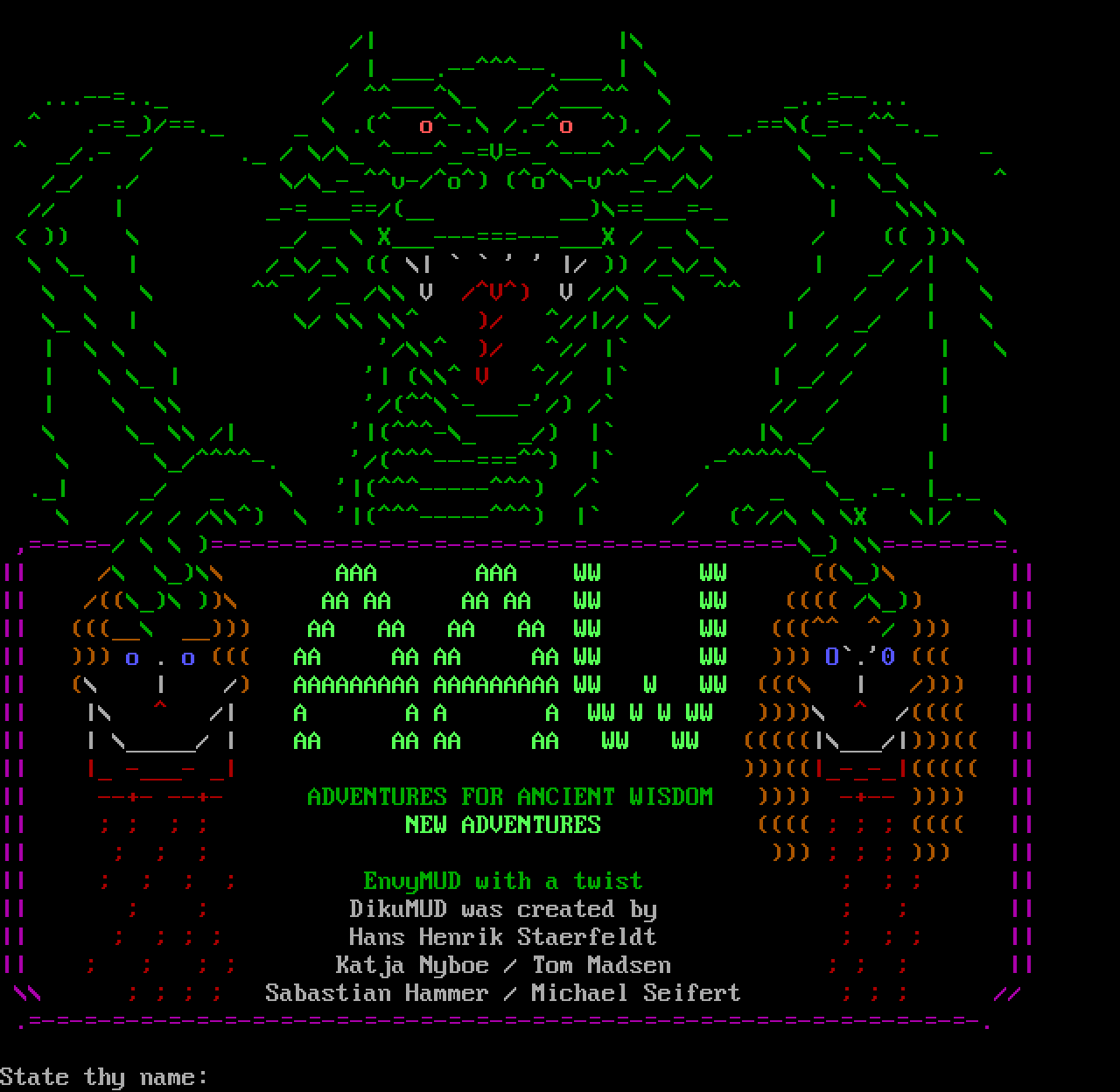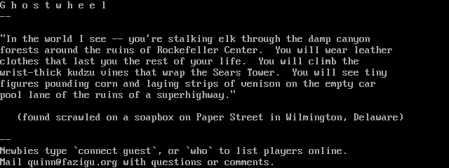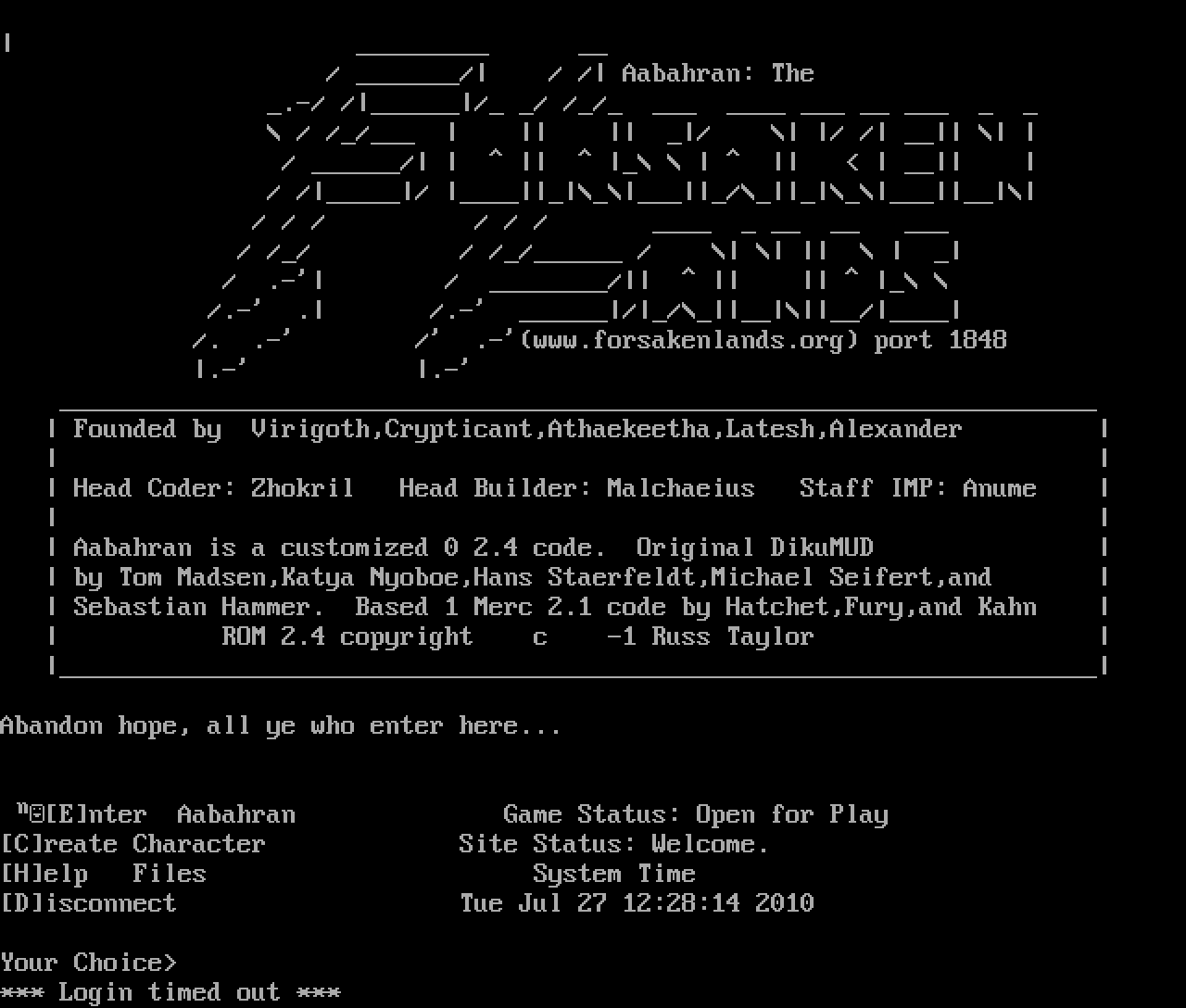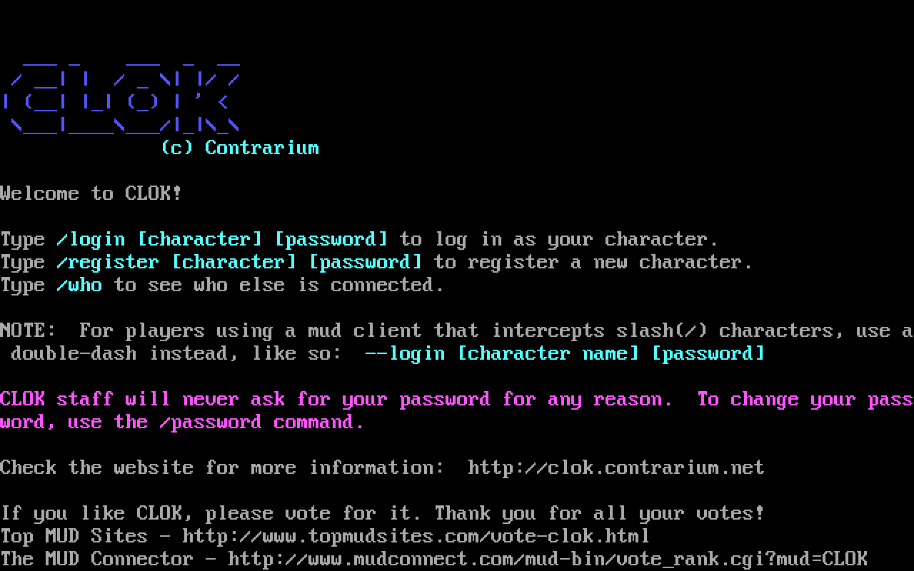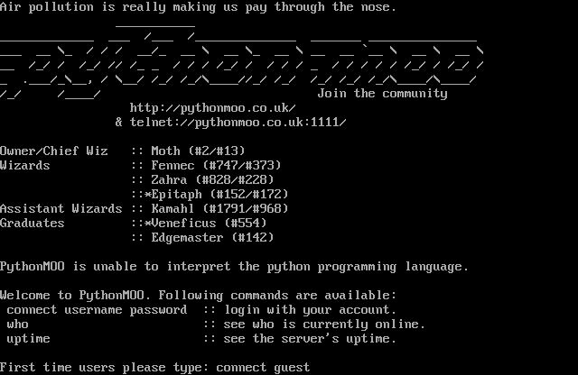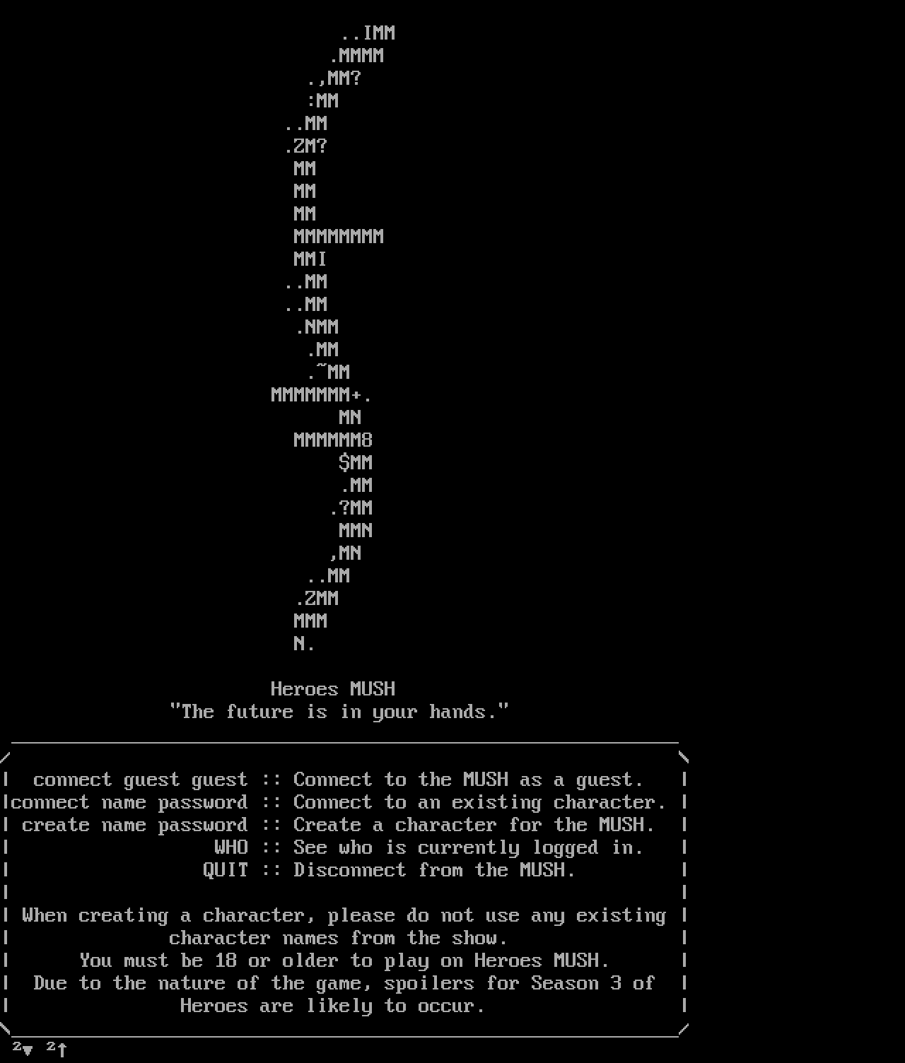 The following MU front door snapshots were taken by Webmudlister starting in 2013. Feel free to include them in your MU listing pages. View the source of this page and search for the domain name or IP address to locate in the list quickly. Of note, it is sorted A-Z based on its IP/Domain.
