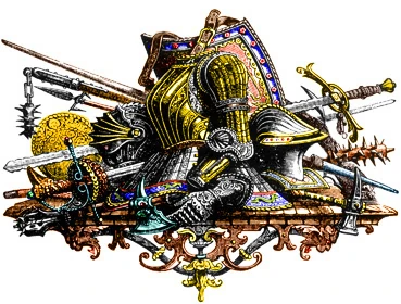 The selection of arms: Weapons range from the crudest of wooden clubs to the most exquisitely smithed blades. Various studies in weapons also occur -- from the sly, secret ways of assassins to the blunt but effective use of berserker tactics. There are even legends about particular blades possessing hidden qualities which can aid or hinder a warrior. The weapons trade is not entirely without profit itself, and therefore offers many ways of sustaining even the most foolhardy merchant.